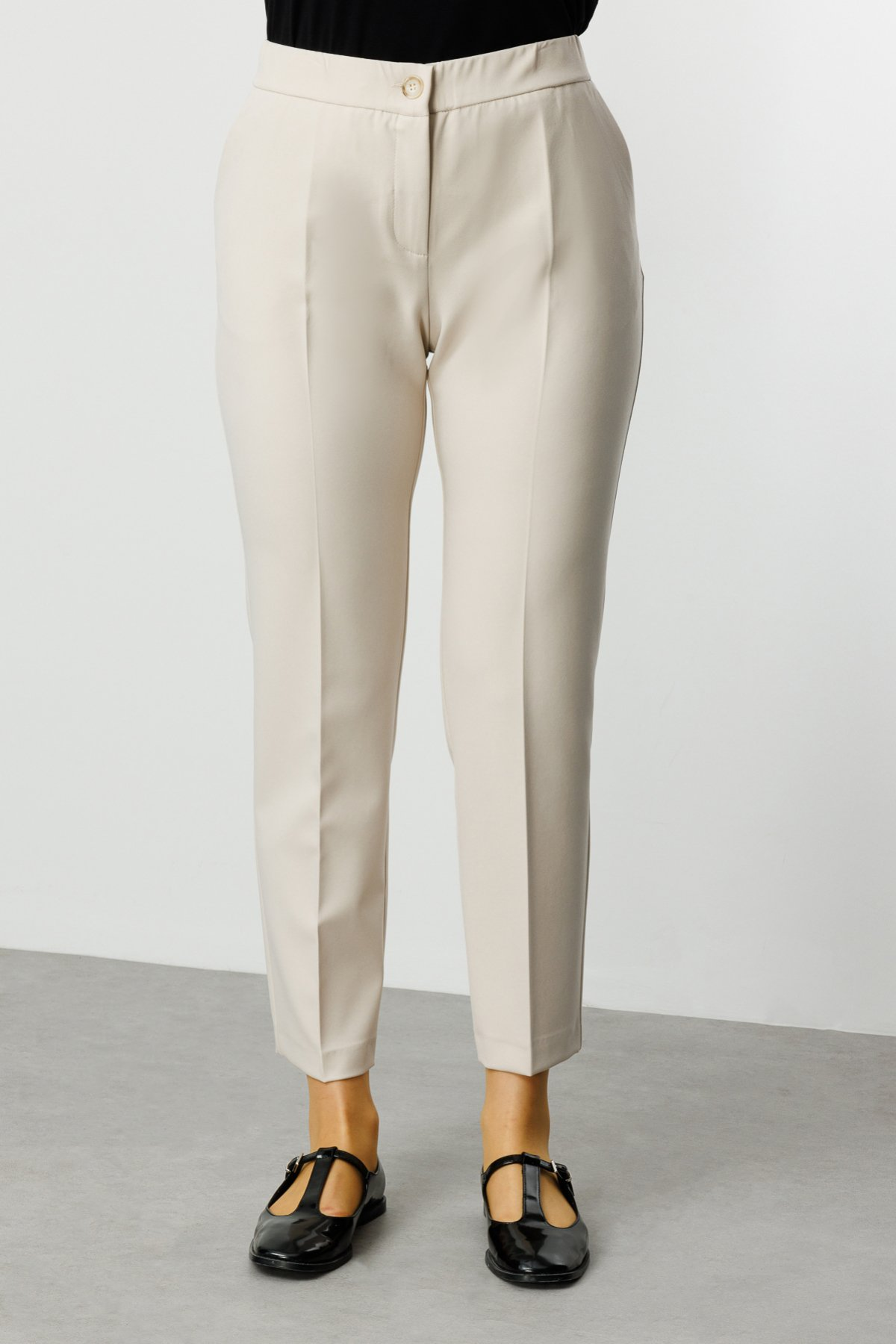 Ekol BB Minimalist Kadın Pantolon - 7/8 Boy - Yüksek Bel - Düz Kesim
