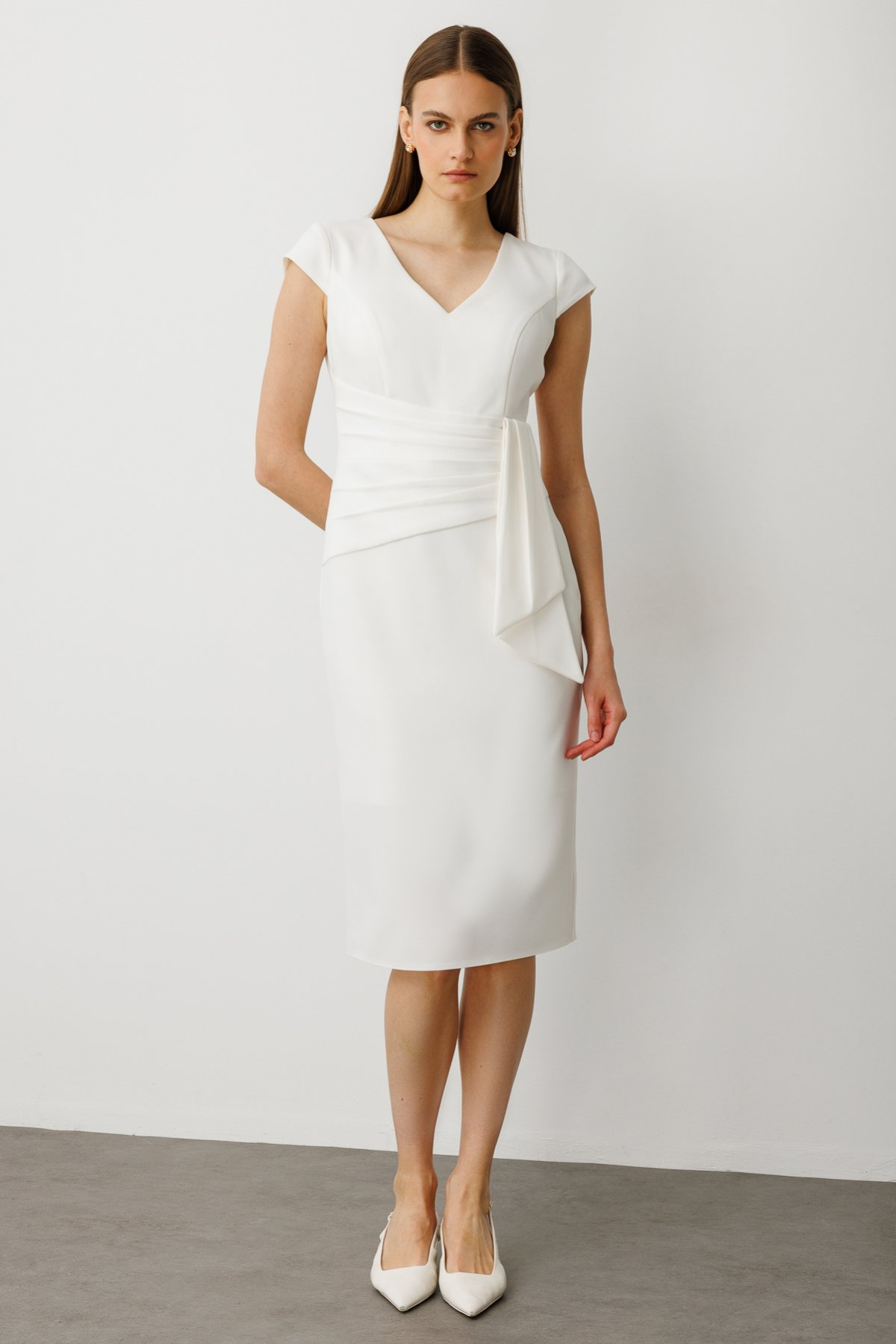 Ekol Beli Kuşaklı Midi Boy Gece Elbisesi