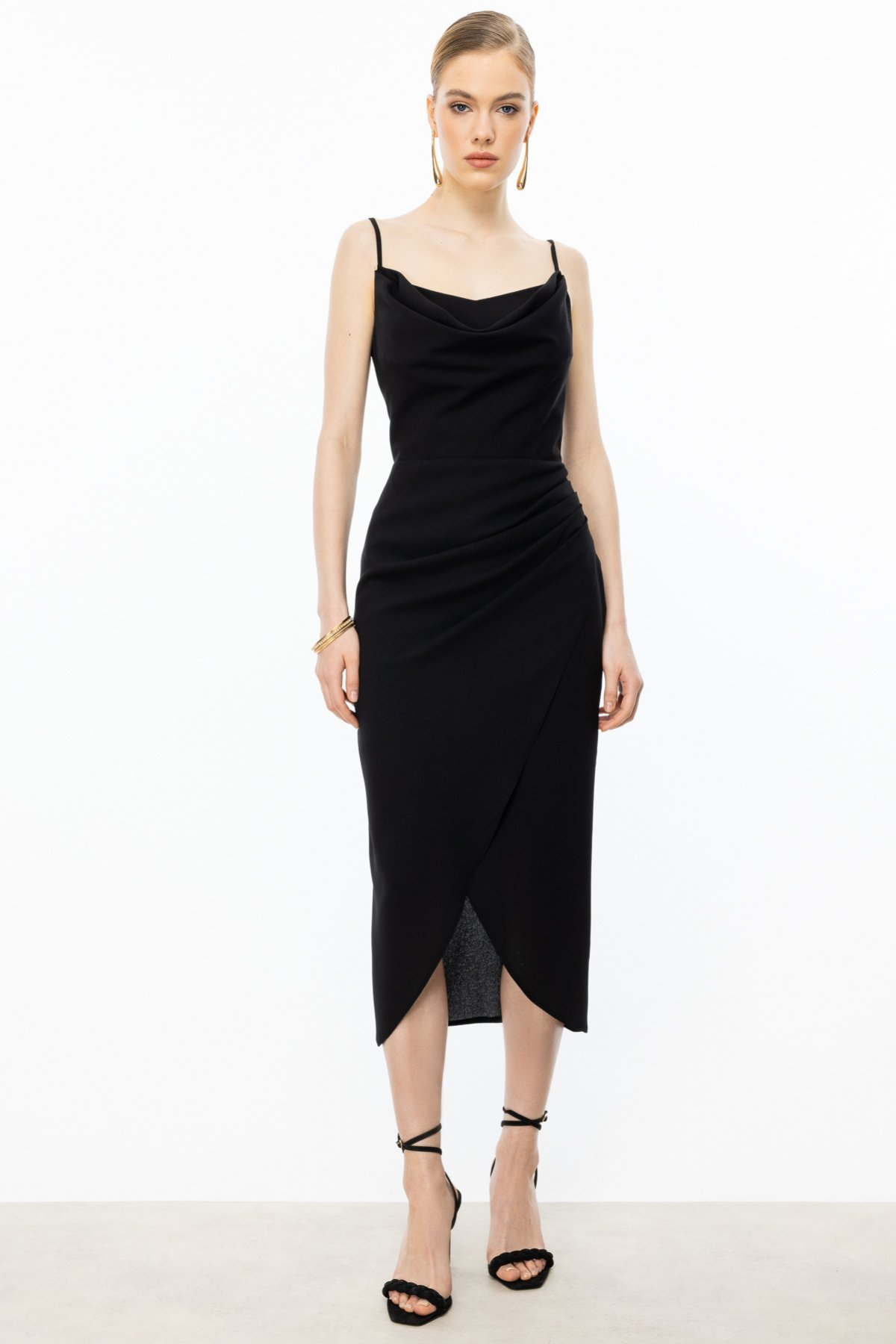 Ekol İp Askılı Degaje Yaka Gece Elbisesi