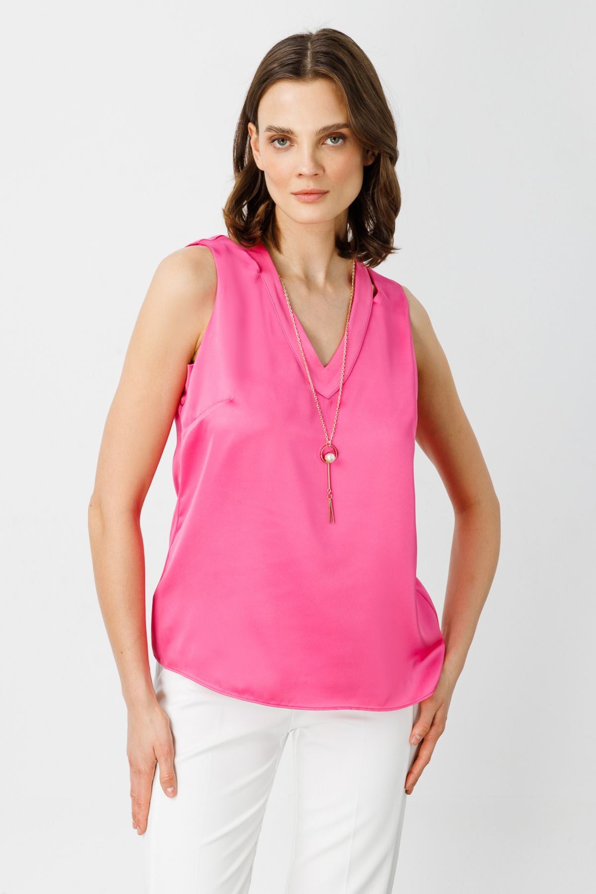 Ürün Özellikleri -Kolyeli; -Saten görünümlü kumaş; -Astarlı; -V Yaka; -Ürün Kalıbı:Tam Kalıp; -Ürün Kalınlığı:Orta; -Ürün Boyu:64 cm;...