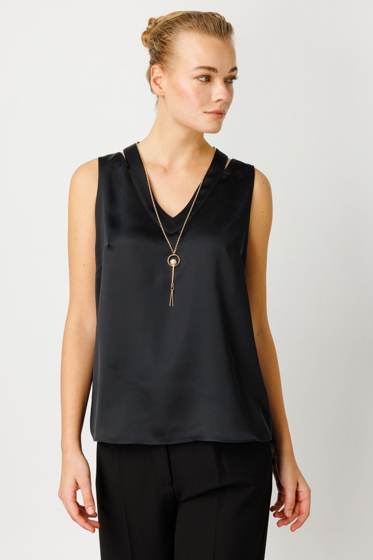 Ürün Özellikleri -Kolyeli; -Saten görünümlü kumaş; -Astarlı; -V Yaka; -Ürün Kalıbı:Tam Kalıp; -Ürün Kalınlığı:Orta; -Ürün Boyu:64 cm; Kumaş İçeriği:%100 poliester; Ürün Sezonu:İlkbahar/yaz; Manken Ölçüleri:; Örnek Beden: Ekol: 38; Manken Boyu: 176 cm; Manken Ölçüleri: 84/61/89;