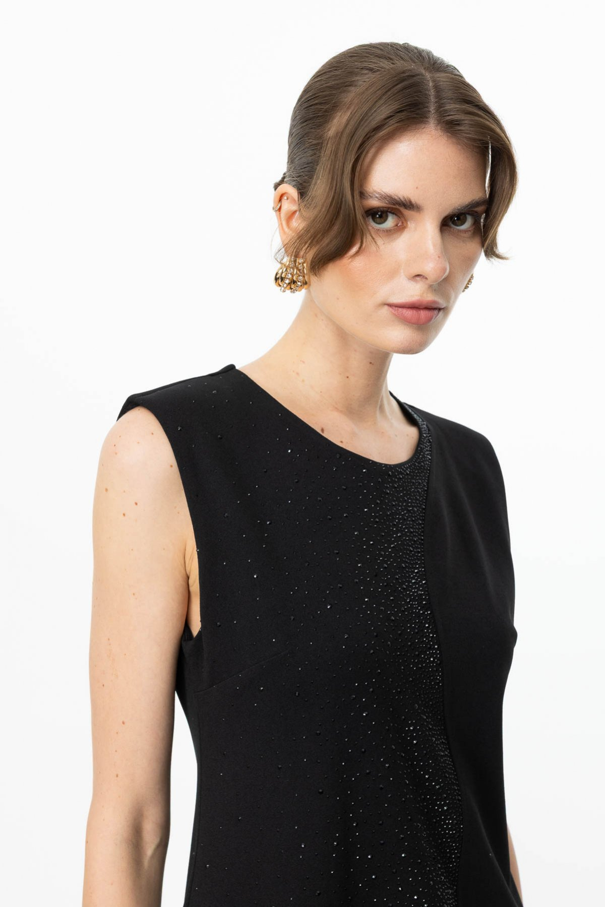Ürün Özellikleri:Sıfır yaka, önü taş işlemeli, astarlı, kolsuz