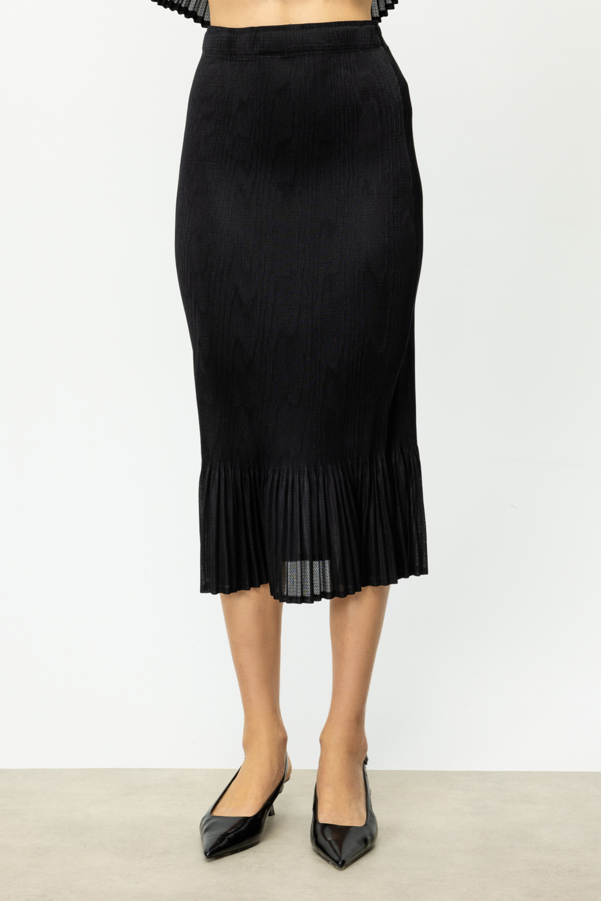 Ürün Özellikleri:Beli lastikli, akardiyon kumaş, midi boy, altı piliseli, astarsızÜrün Kalıbı: Tam KalıpÜrün Kalınlığı: İnceÜrün Boyu: 80...