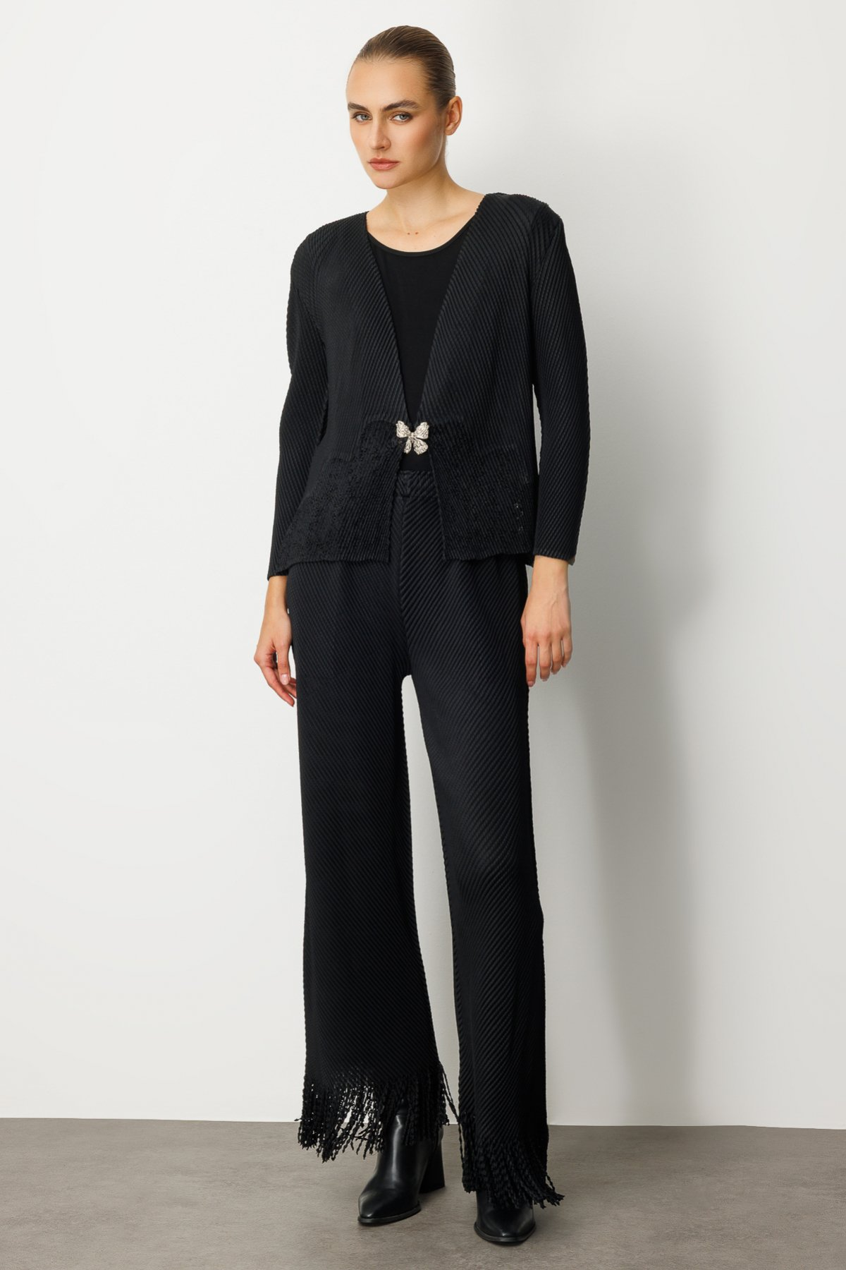 Ekol Kelebek Düğmeli Akordiyon Kumaş Hırka Ekol