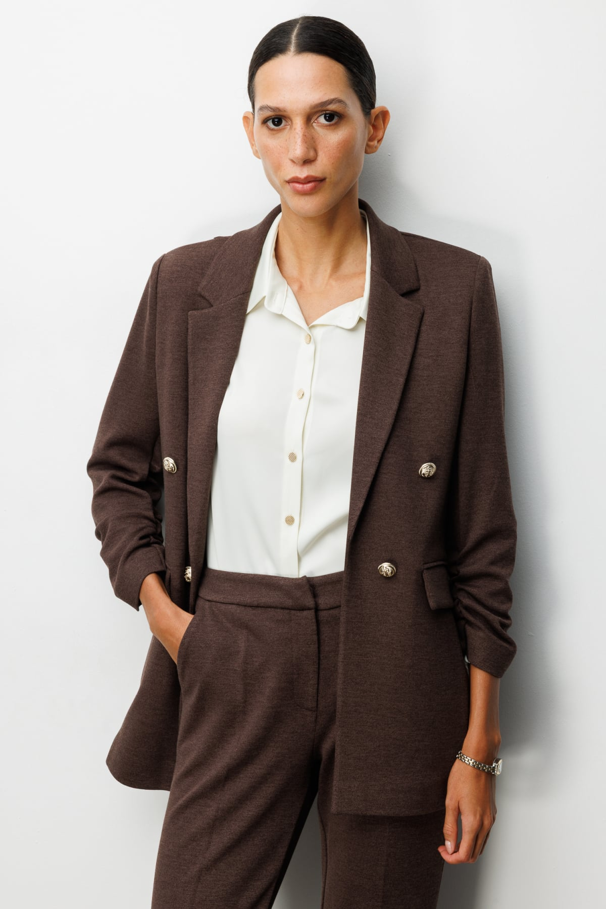 Ekol Kolu Büzgülü Süs Düğmeli Ceket