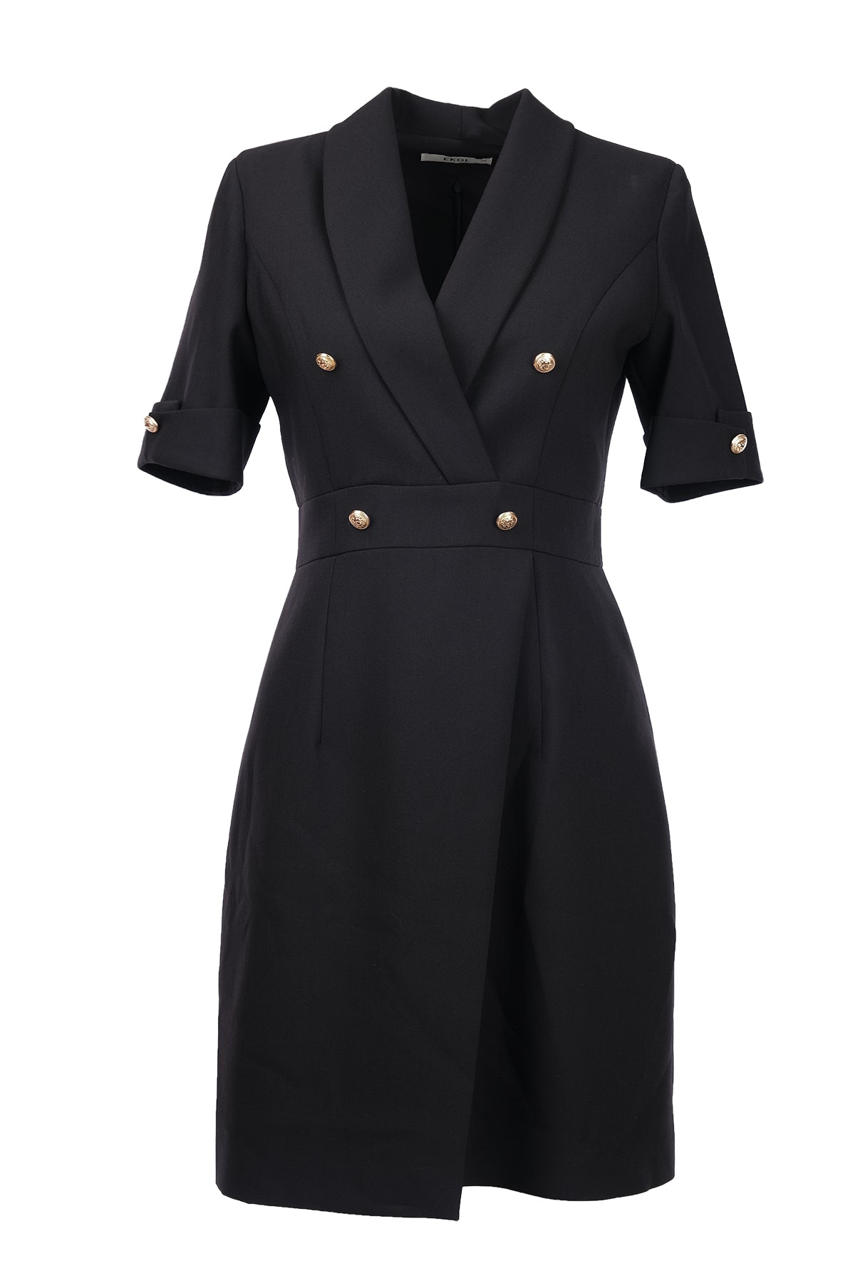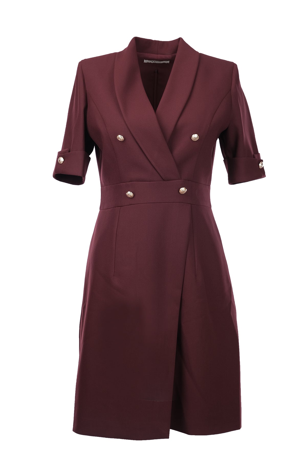Ekol Minimalist Midi V Yaka Elbise - Kısa Kol - İş & Günlük