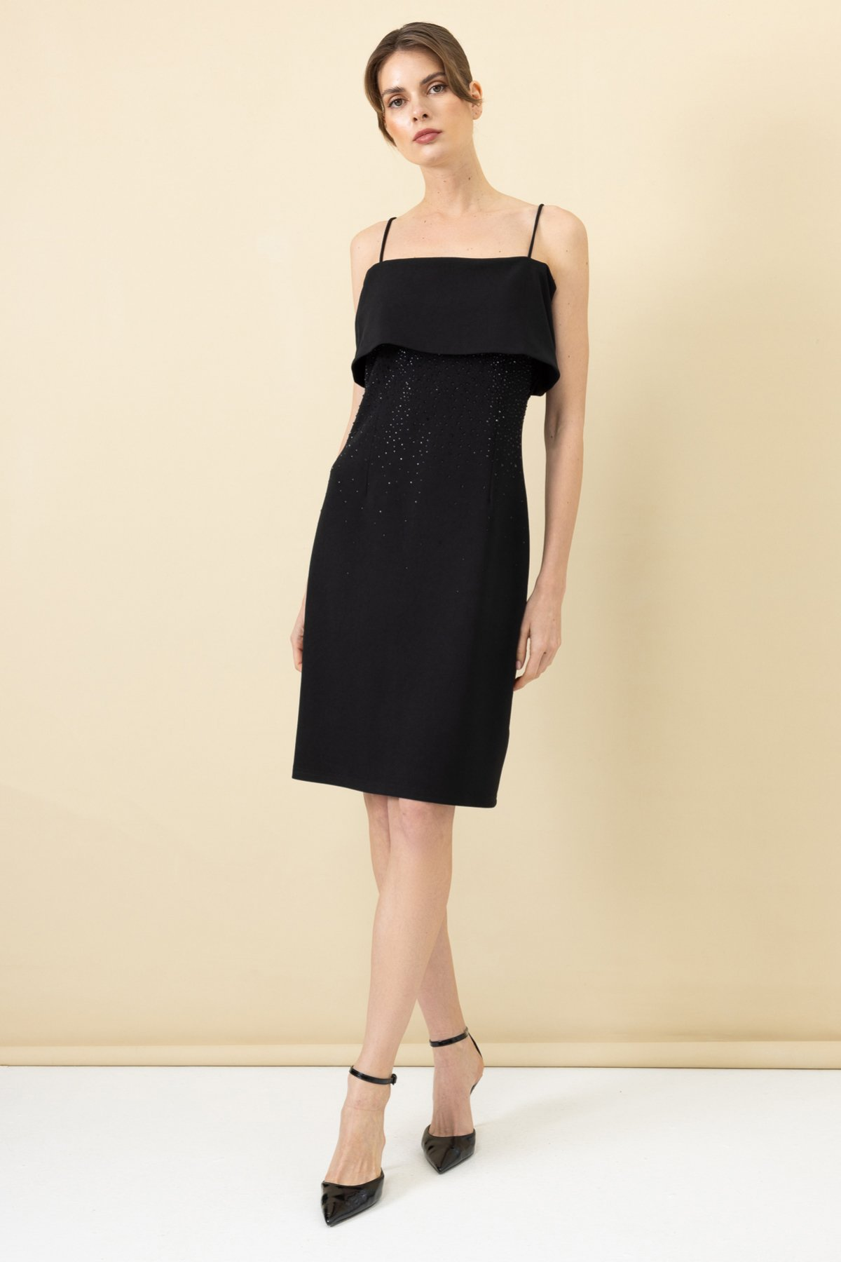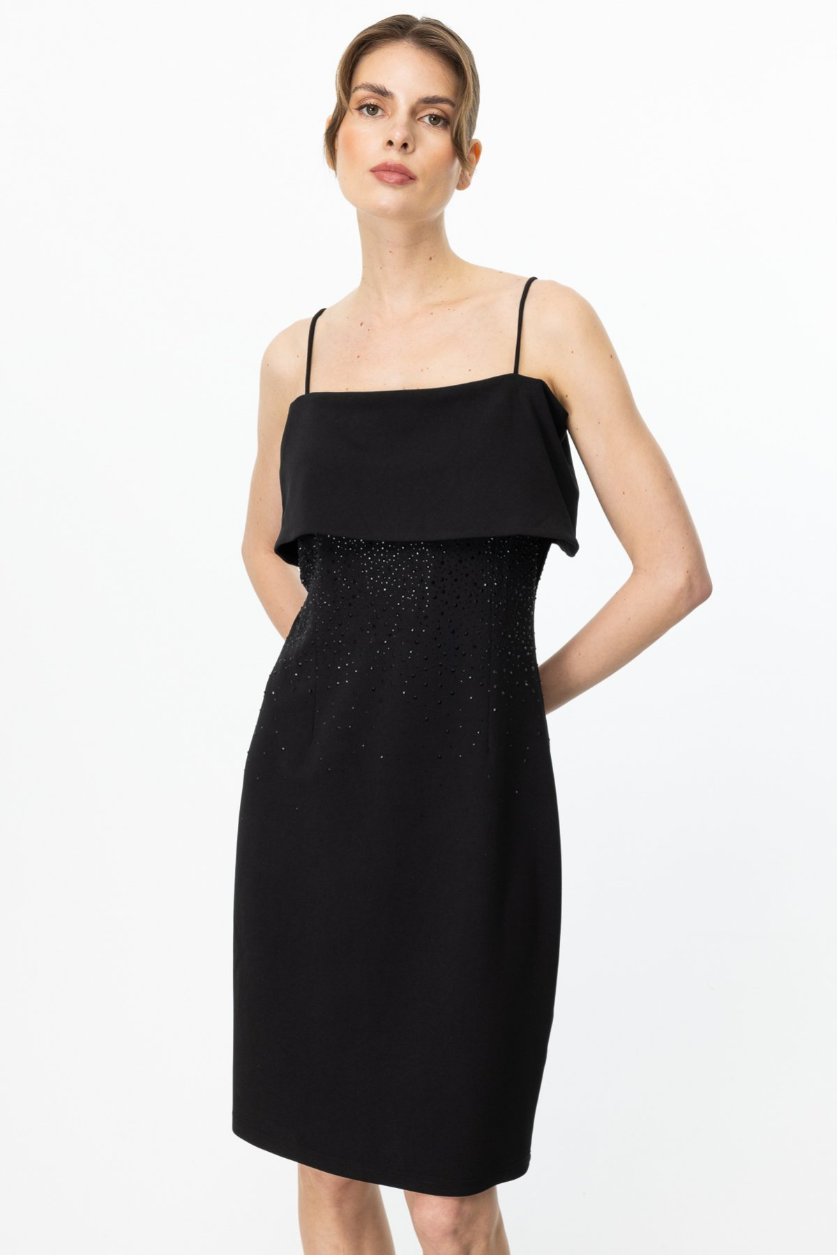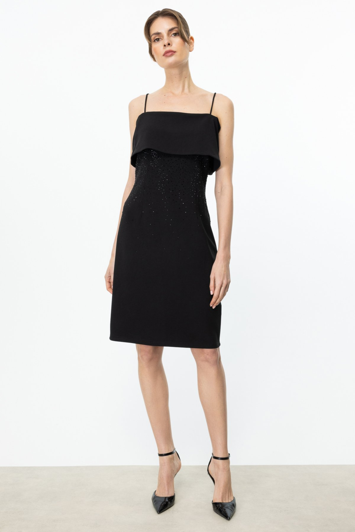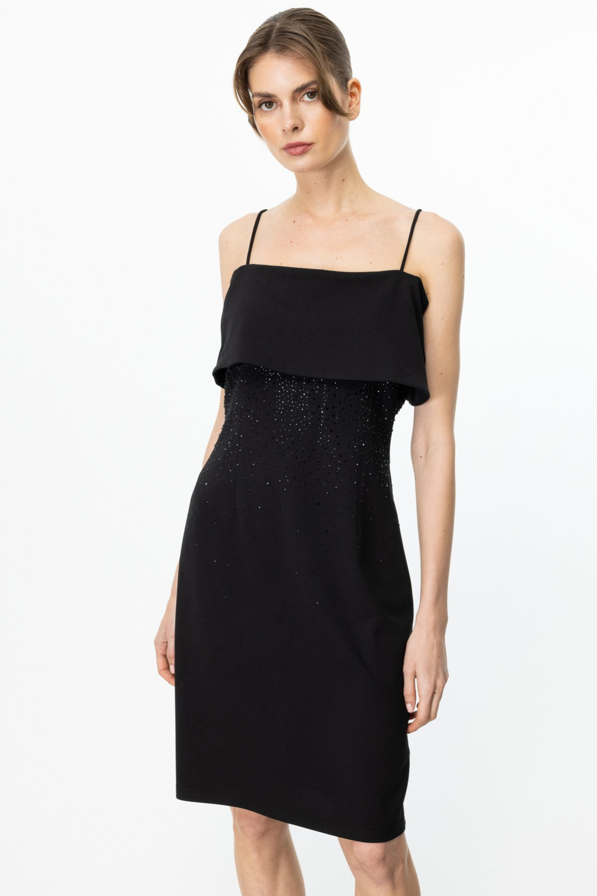 Ekol Straplez Minimalist Midi Elbise - Taş Detaylı