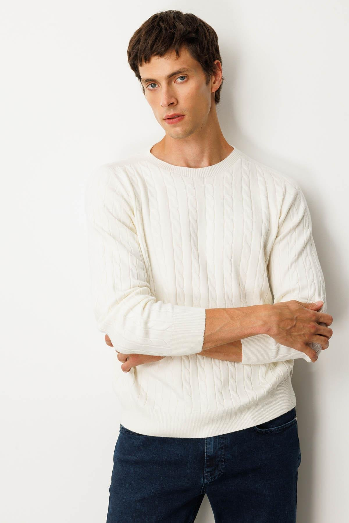 Erkek Sıfır Yaka Saç Örgülü Kazak Desen