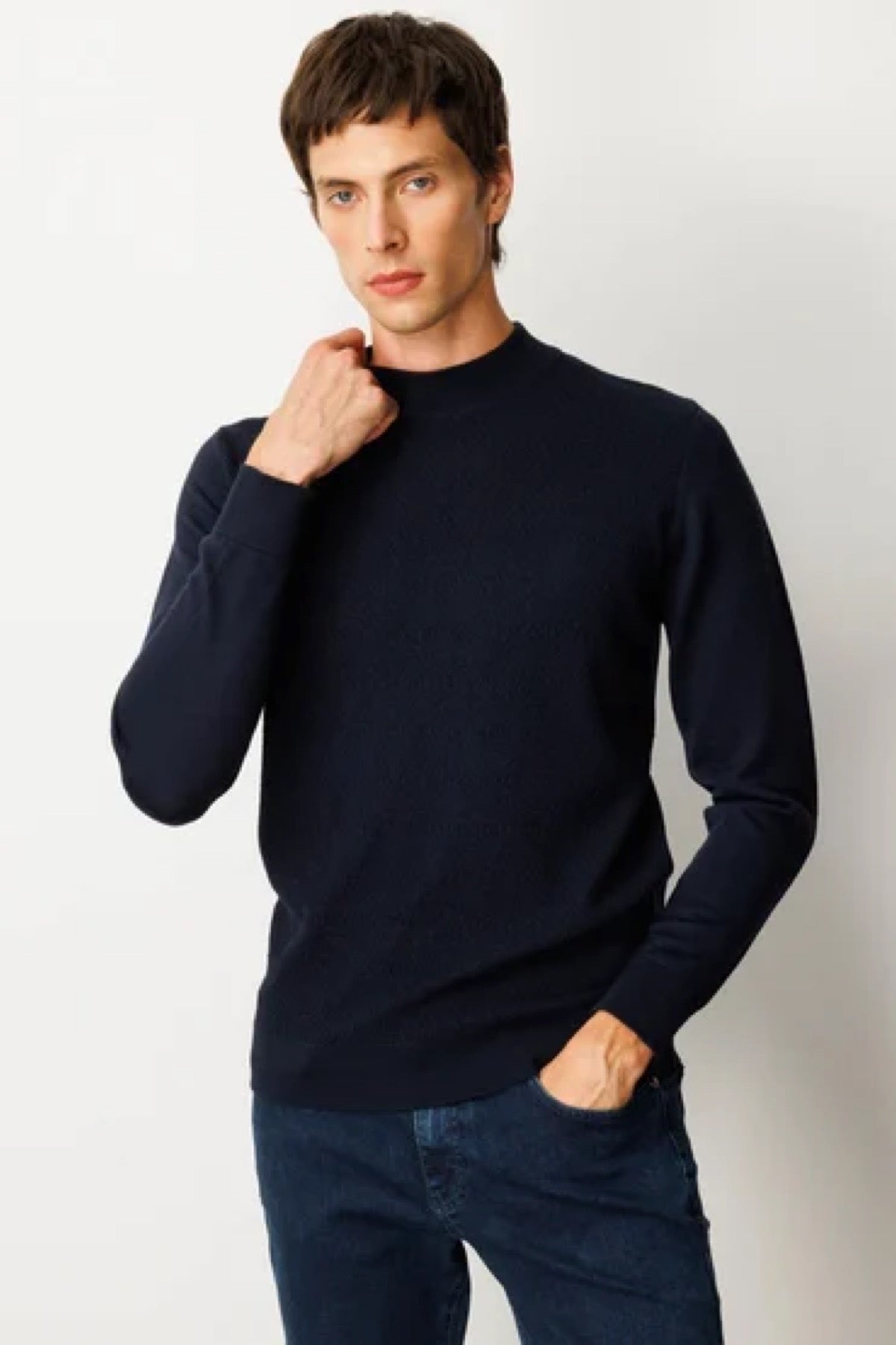 Erkek Yarım Balıkçı Yaka Önü Baklavalı Triko Kazak Desen