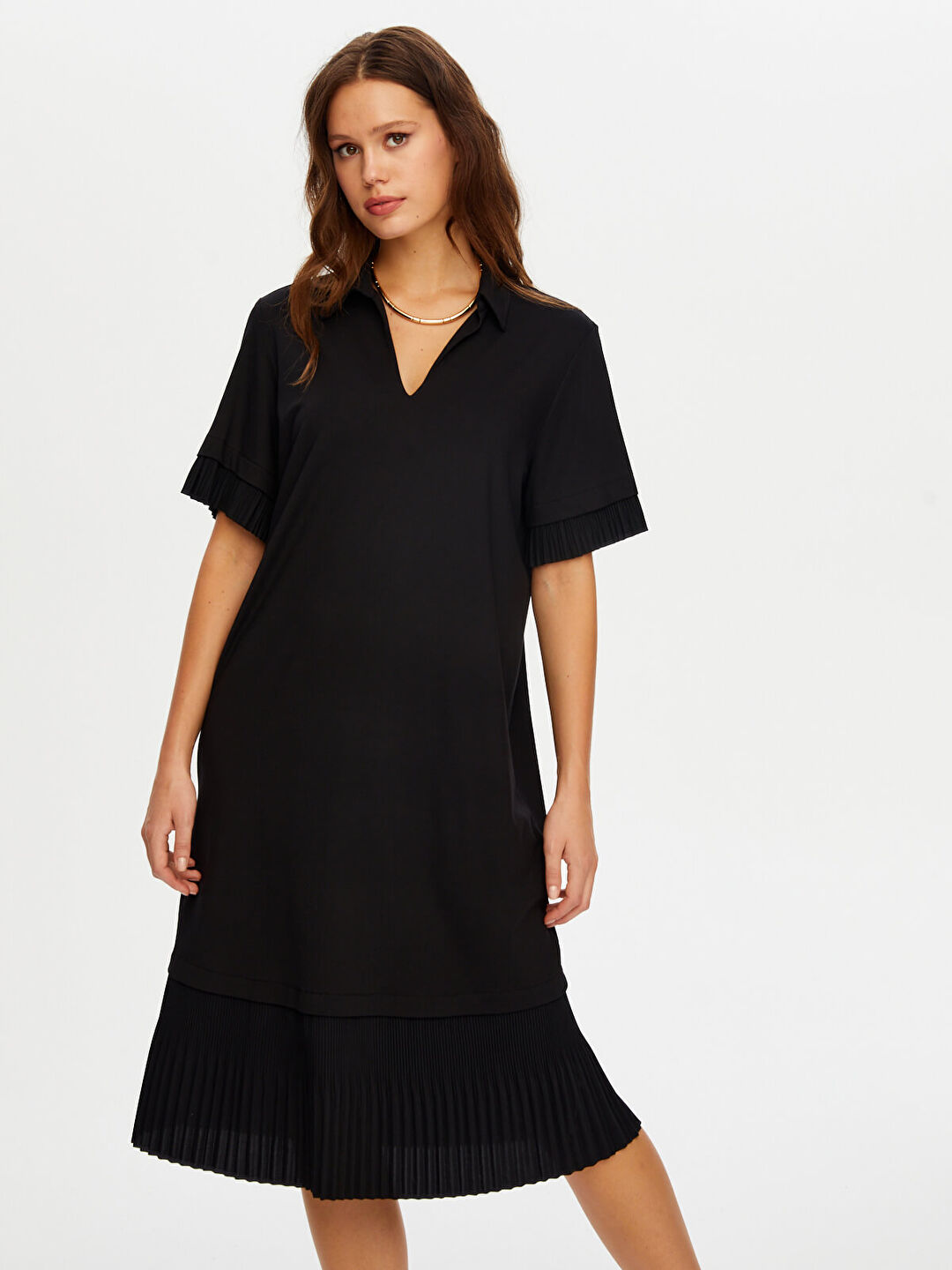Ürün Adı : Eteği Pililseli Kısa Kol Örme Elbise W26ELB022