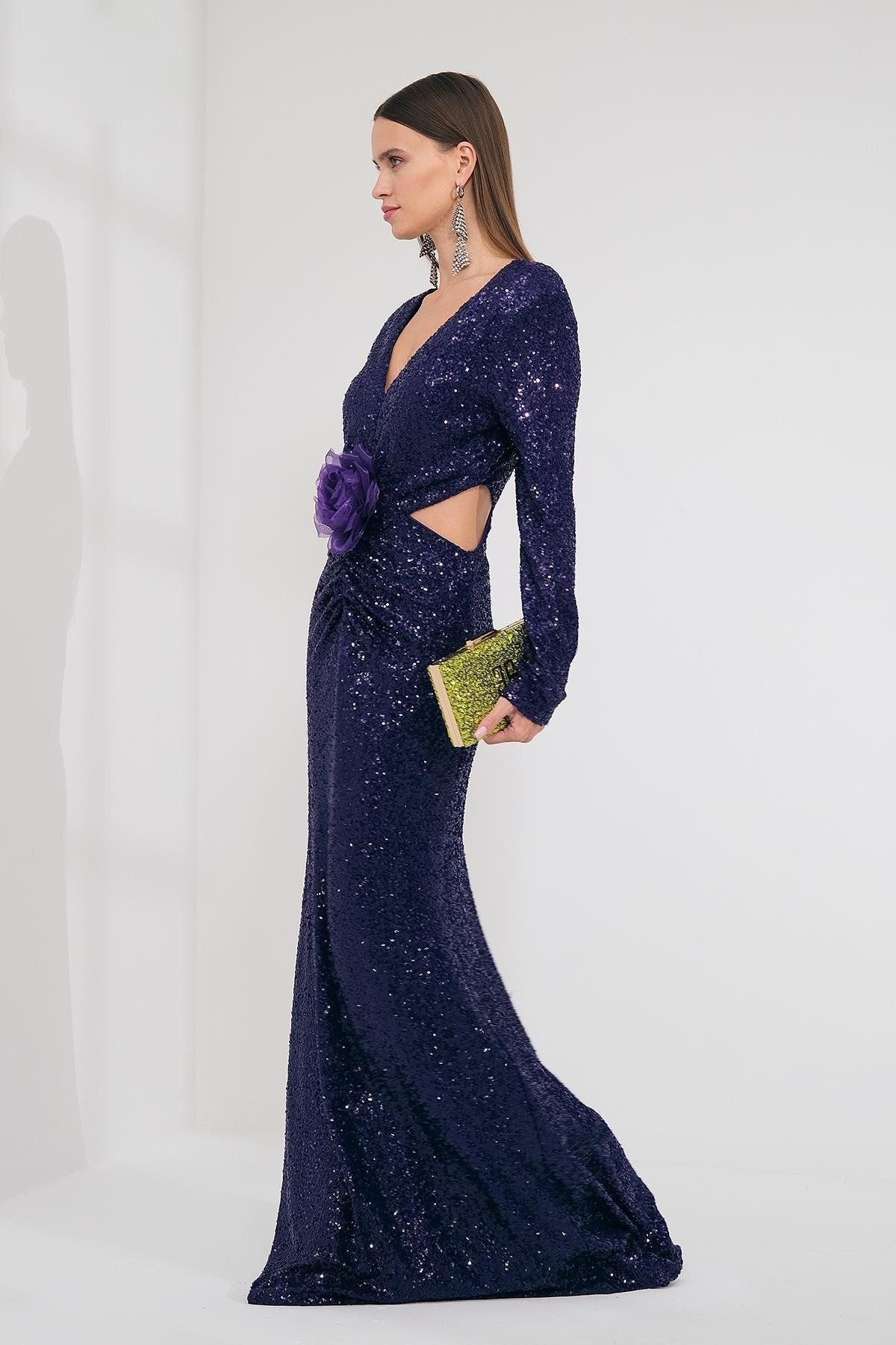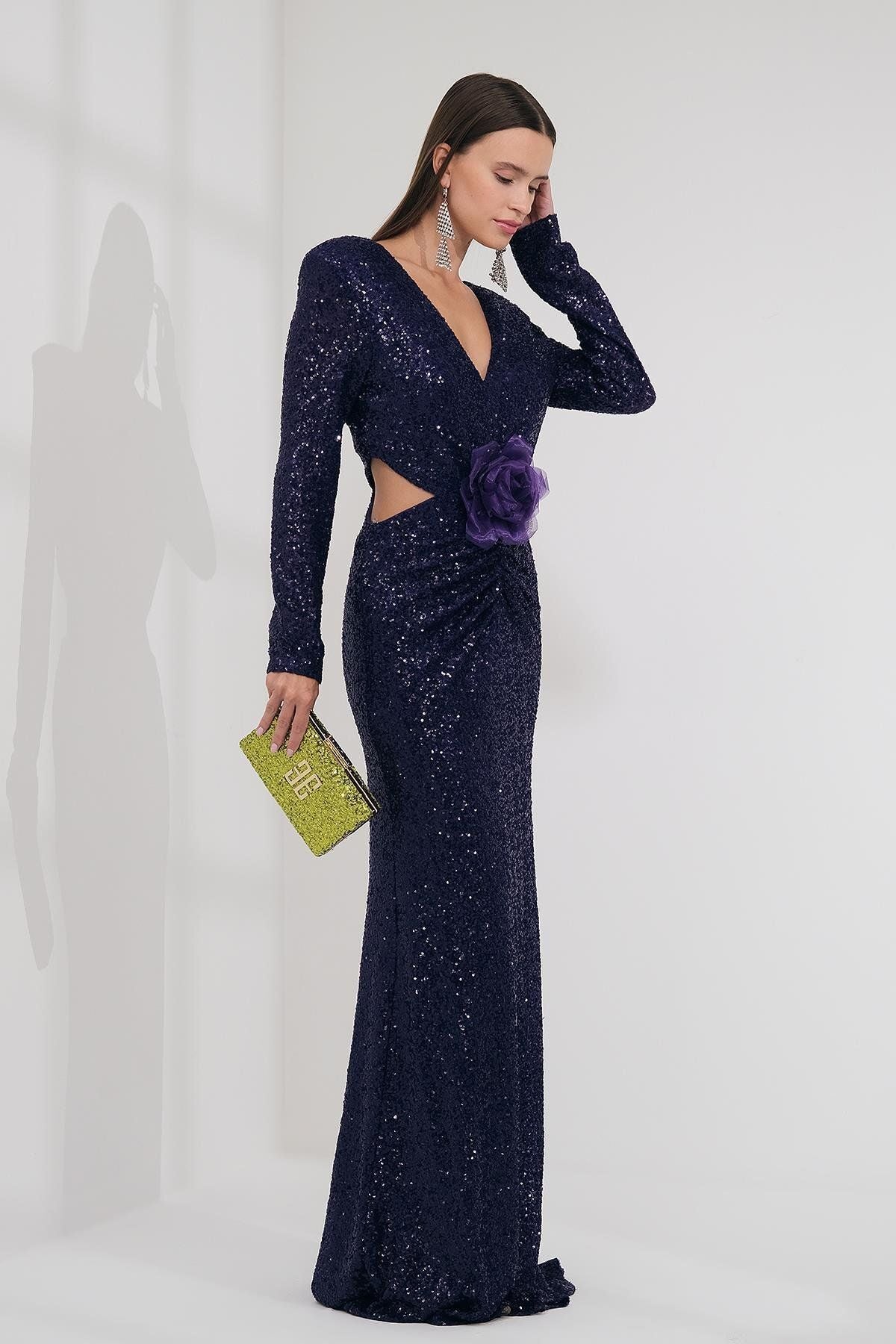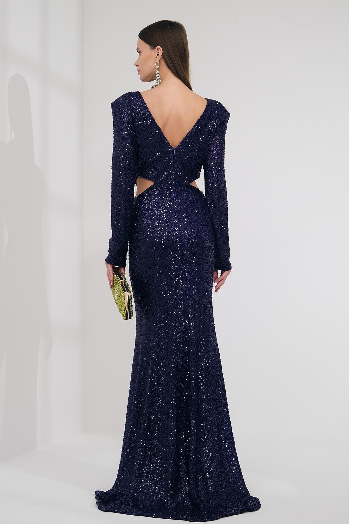 İçerik: %100 Polyester; Ürün Özellikleri; V Yakalı Vatkalı Uzun Kollu Arkadan Gizli Fermuarlı Abiye Elbise; Manken Ölçüleri;...