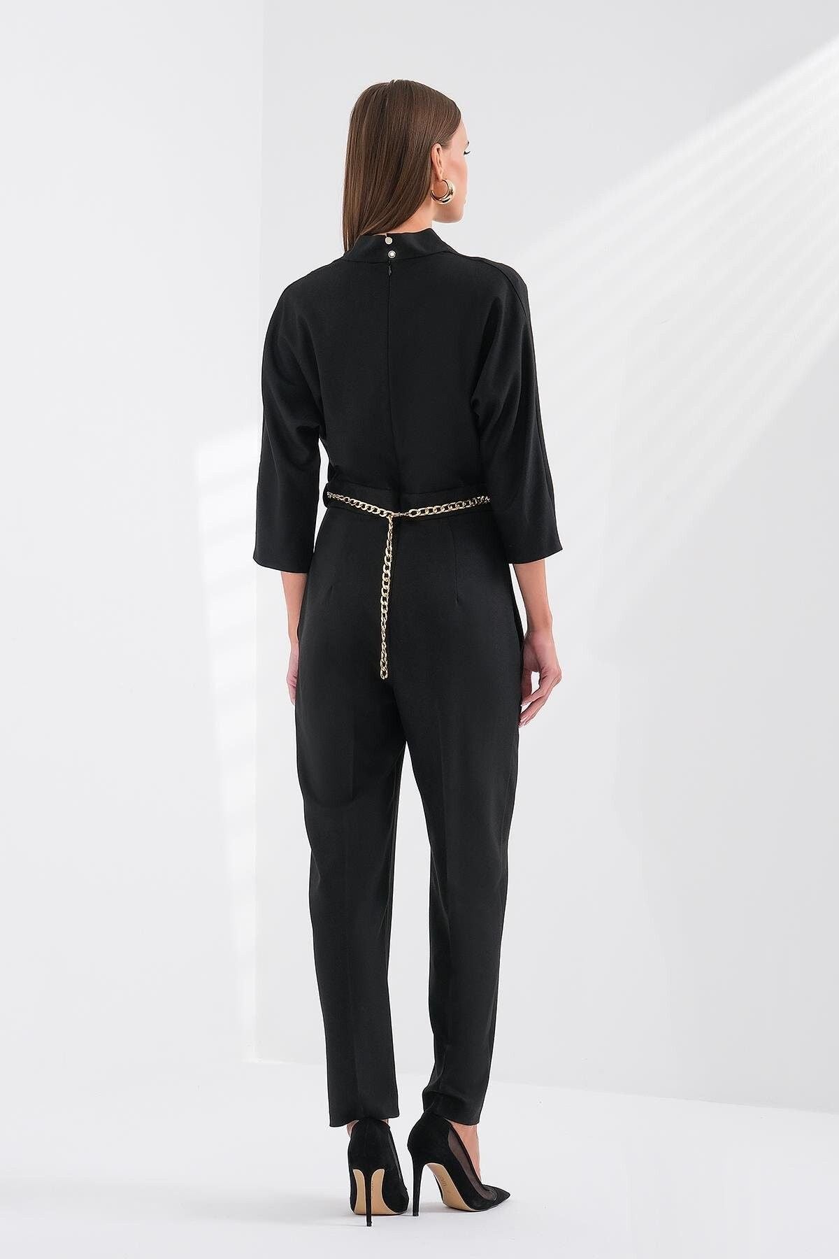 İçerik:; %96 Polyester %4 Elastan; Ürün Özellikleri:; V Yakalı Truvakar Kollu - Gizli Fermuarlı Yanlardan Cepli Tulum;...