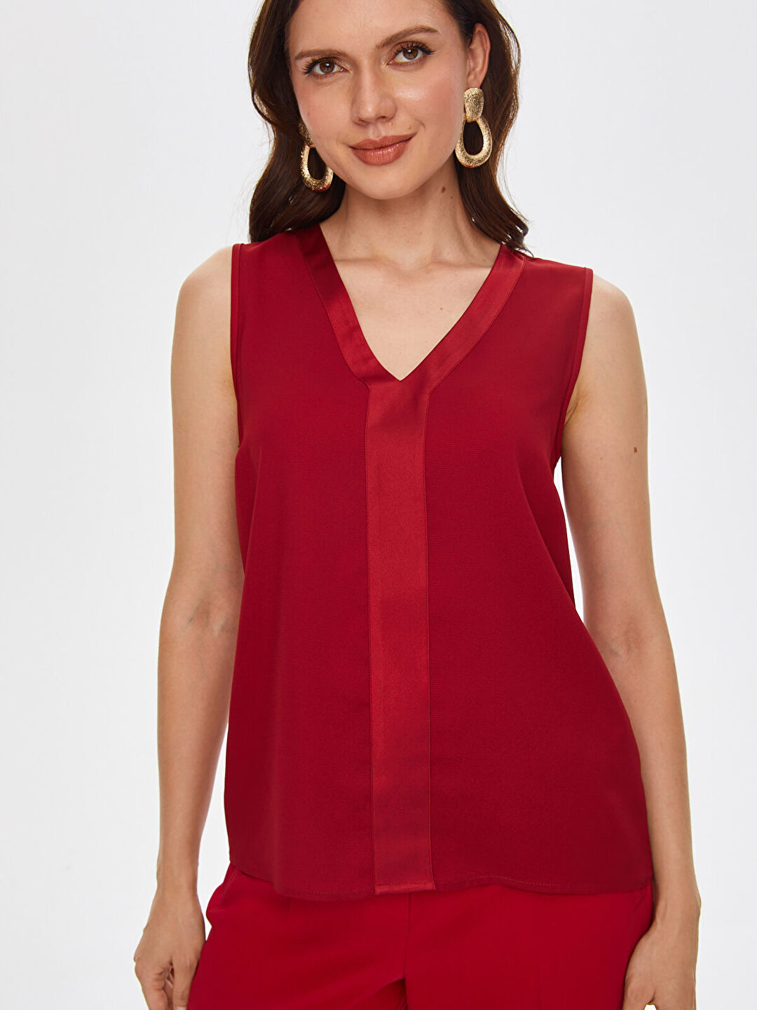 Faik Sönmez Kadın Saten Garnili V Yaka Dokuma Atlet U69124%100 Polyester