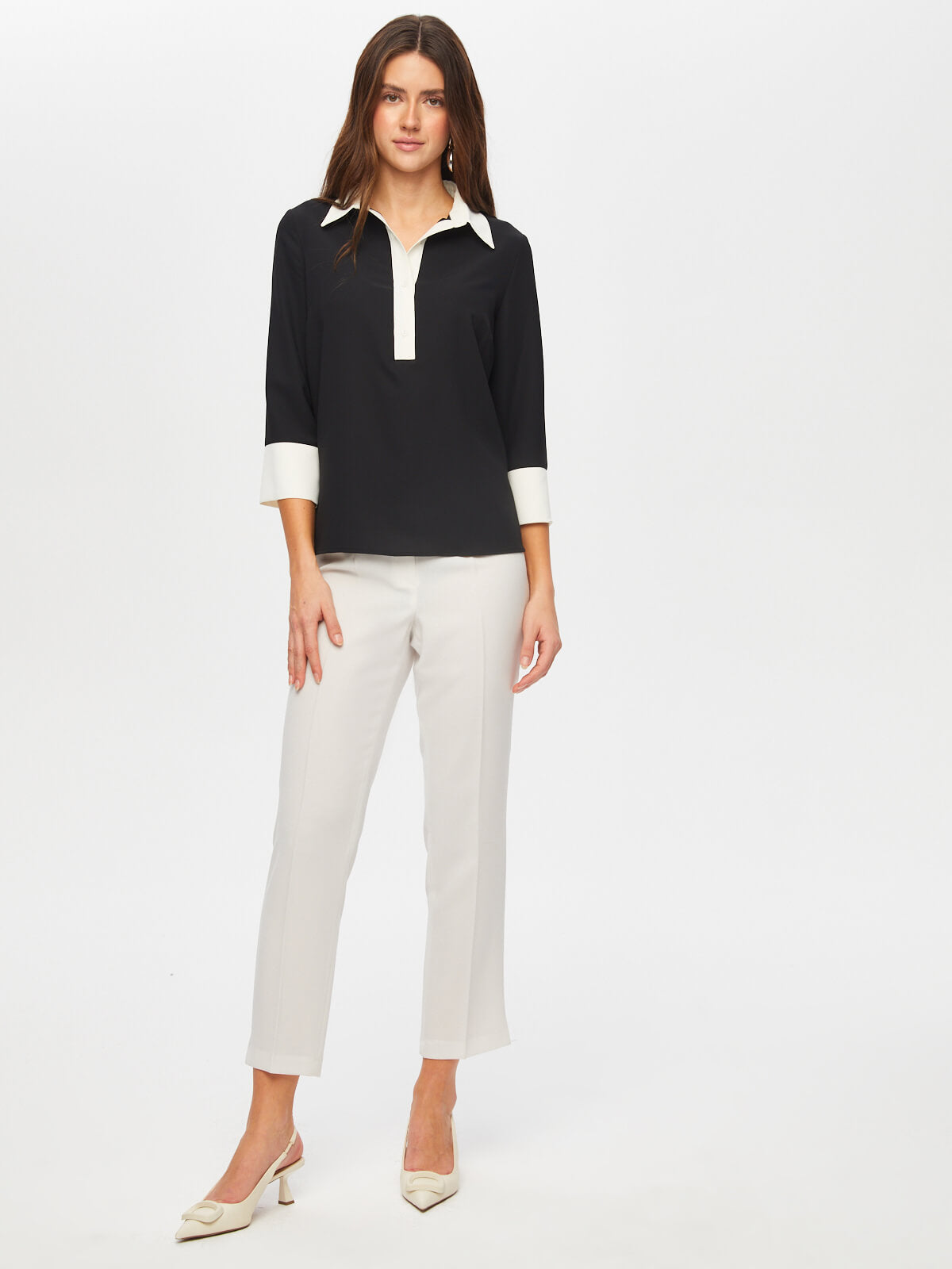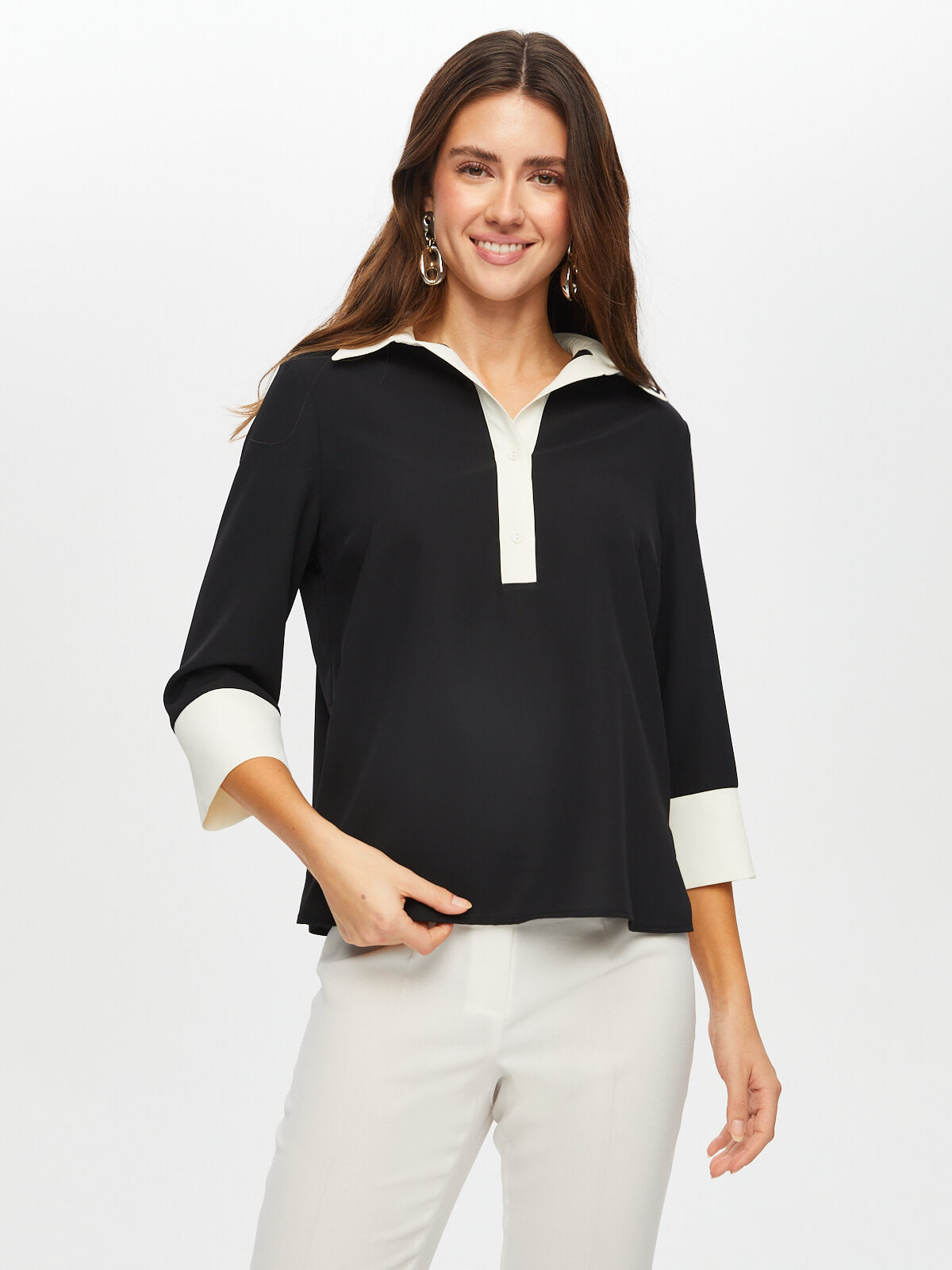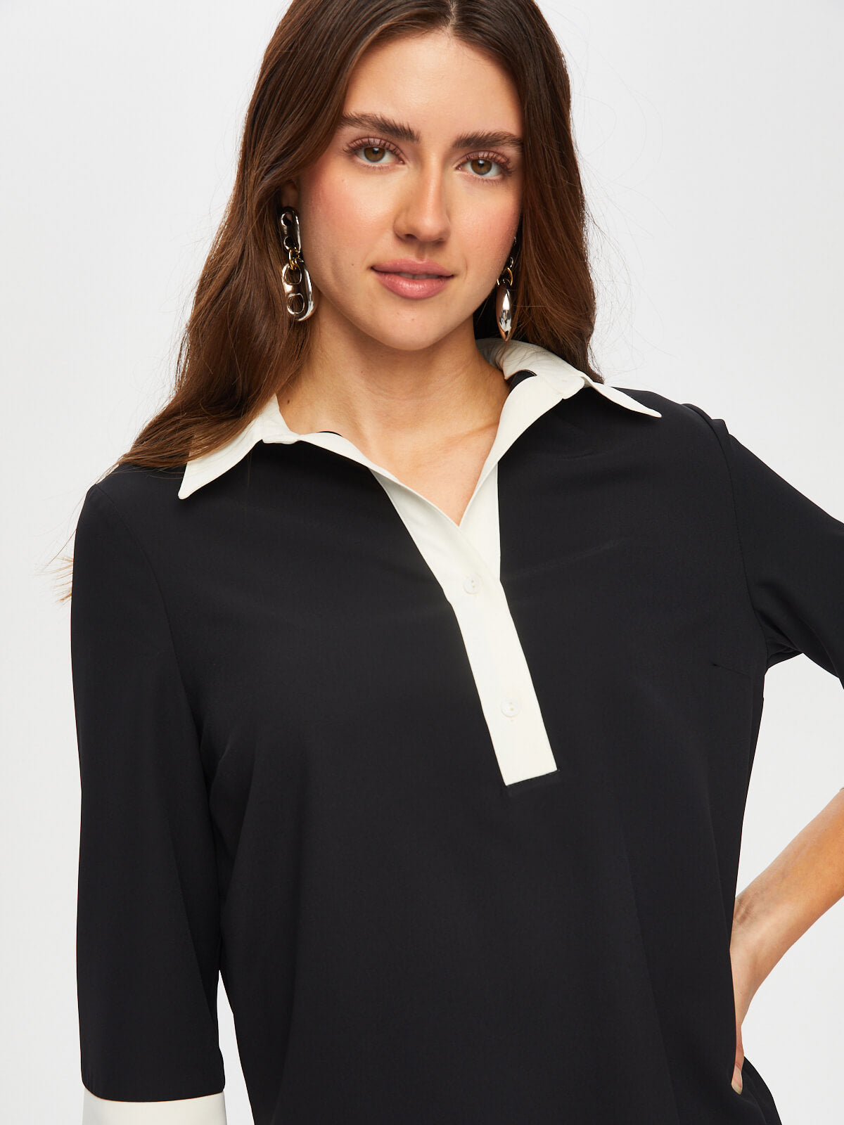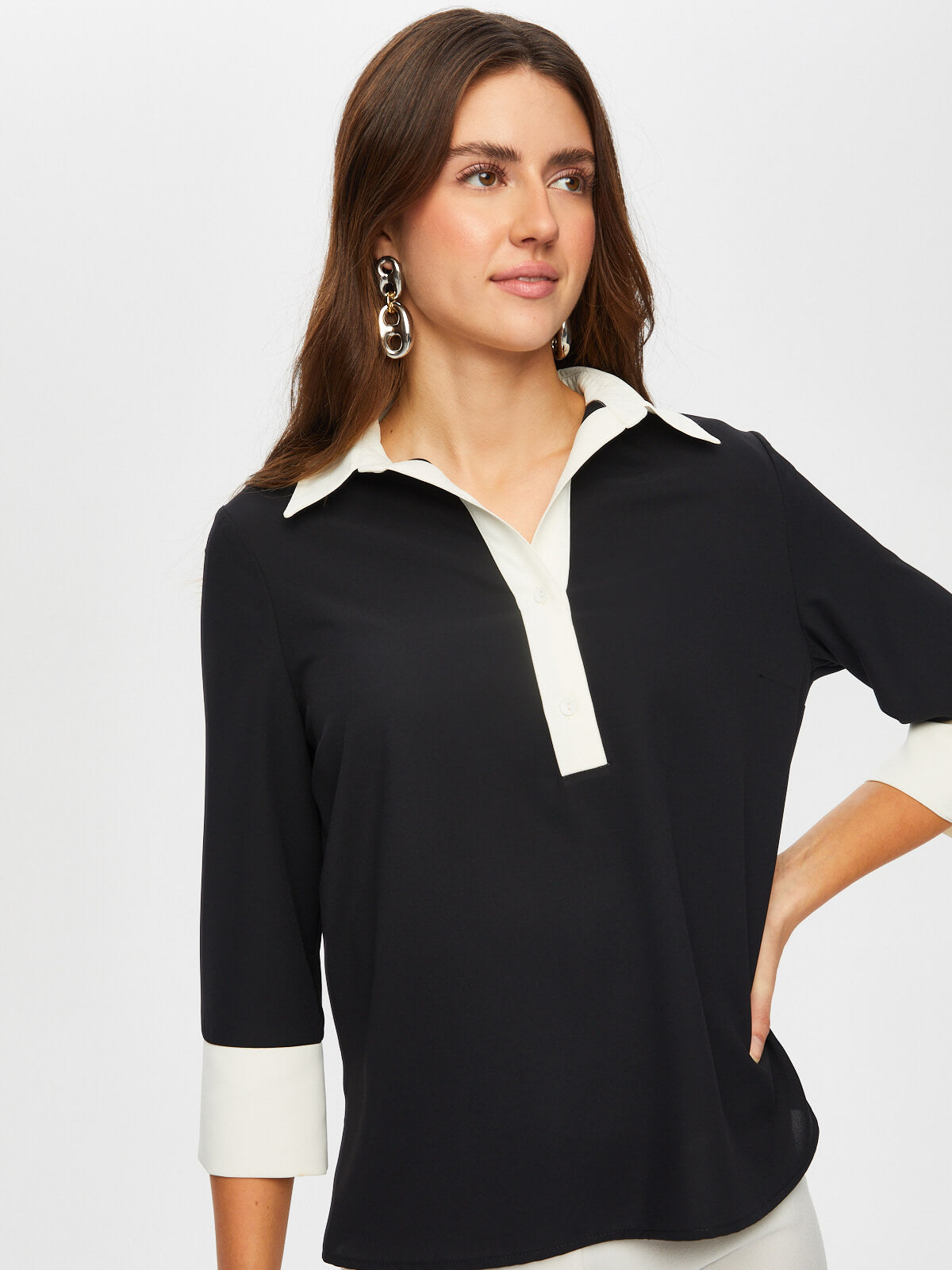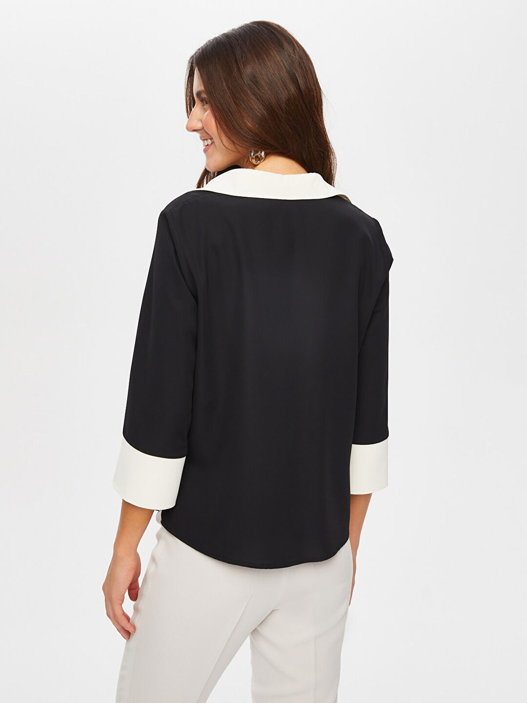 Renk Bloklu 3/4 Kol Yarım Patlı Bluz Faik Sönmez%100 Polyester