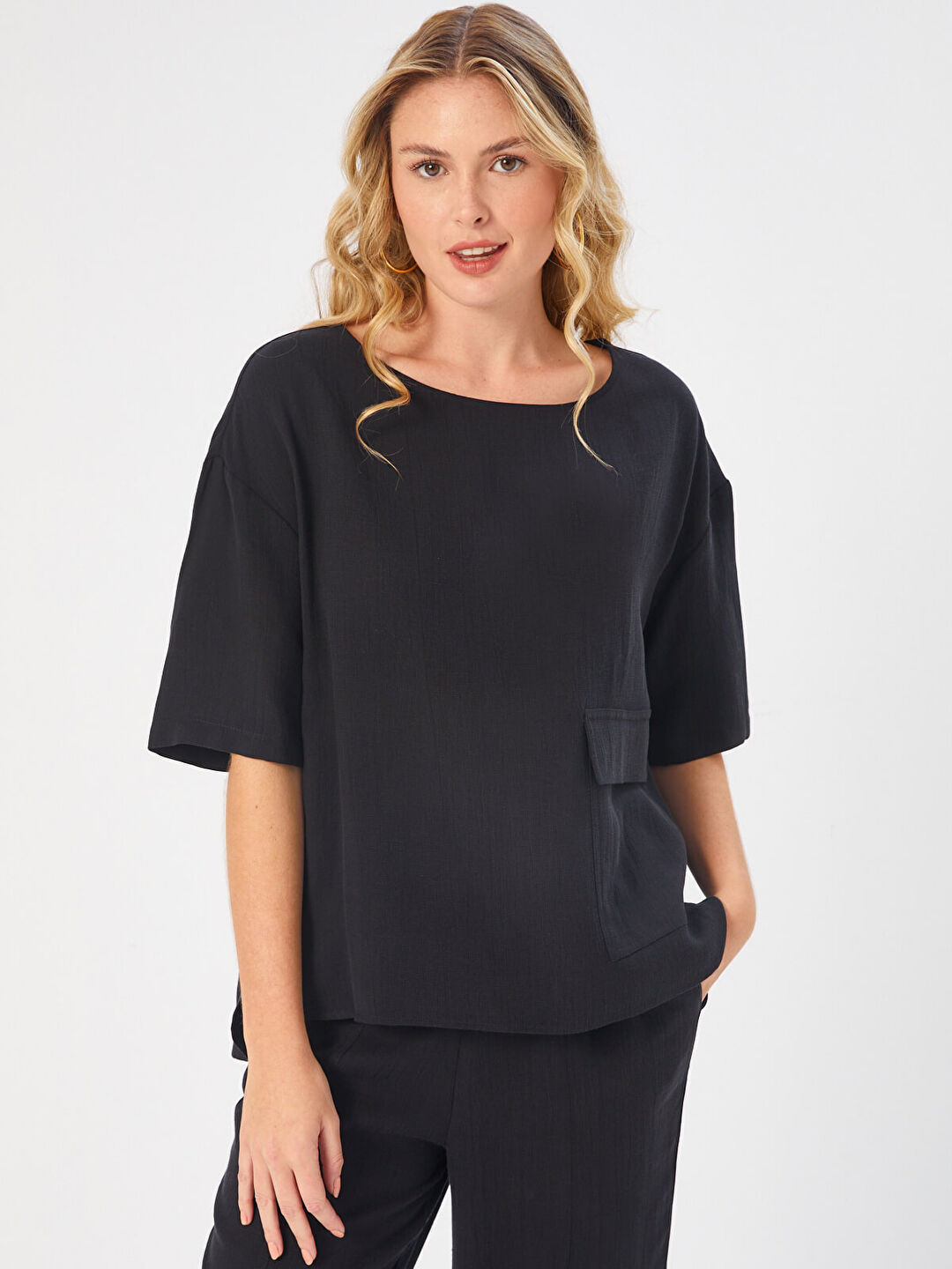 Faik Sönmez Kadın Önü Cep Detaylı Dokuma Bluz U68182