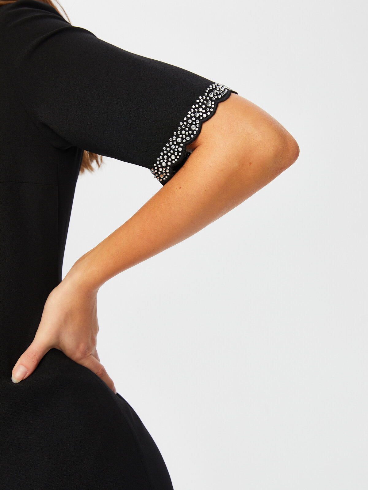 Ürün Adı : Dilim Taş Detaylı Kısa Kol Yuvarlak Yaka Abiye Elbise S25ABY014