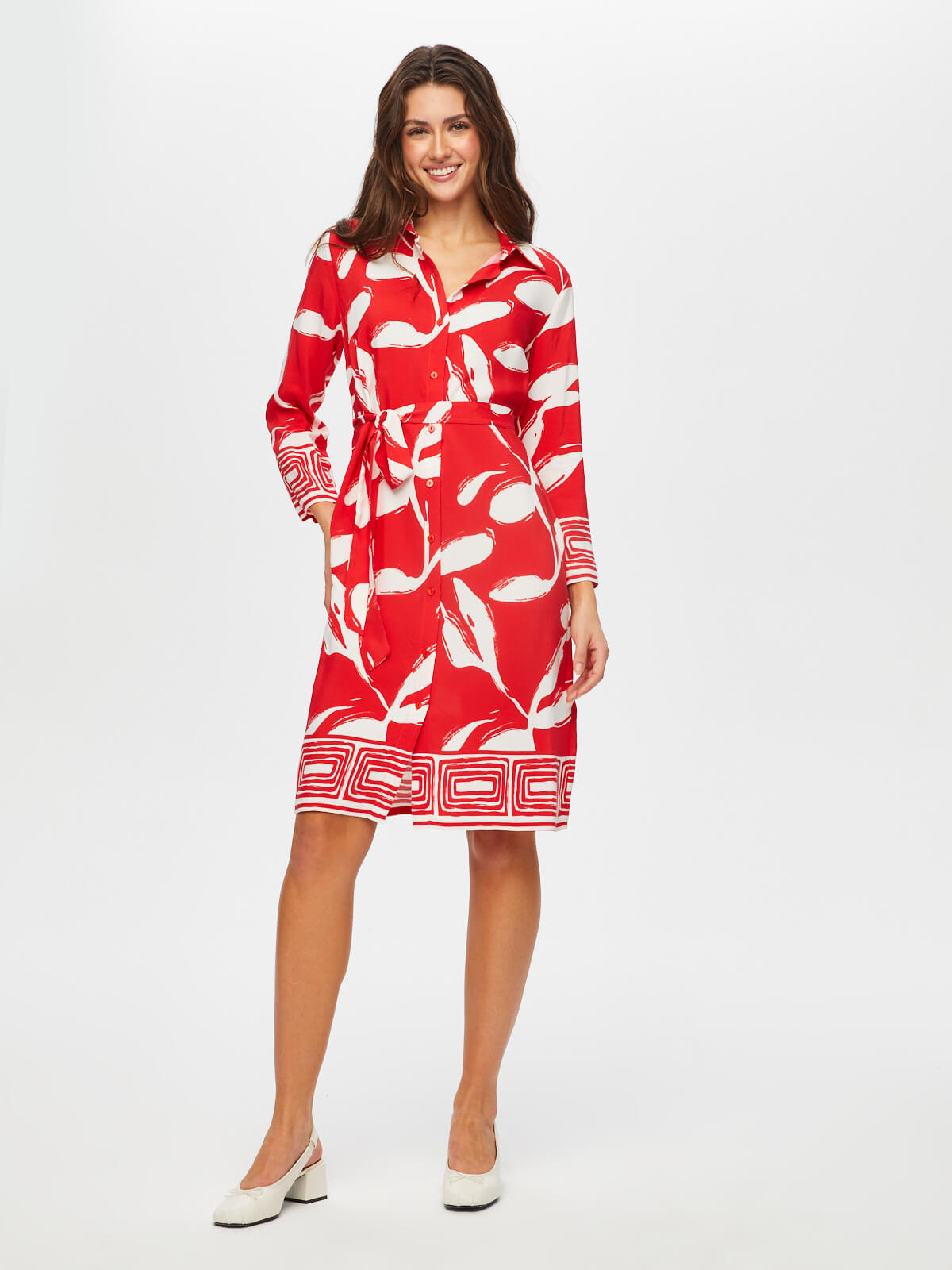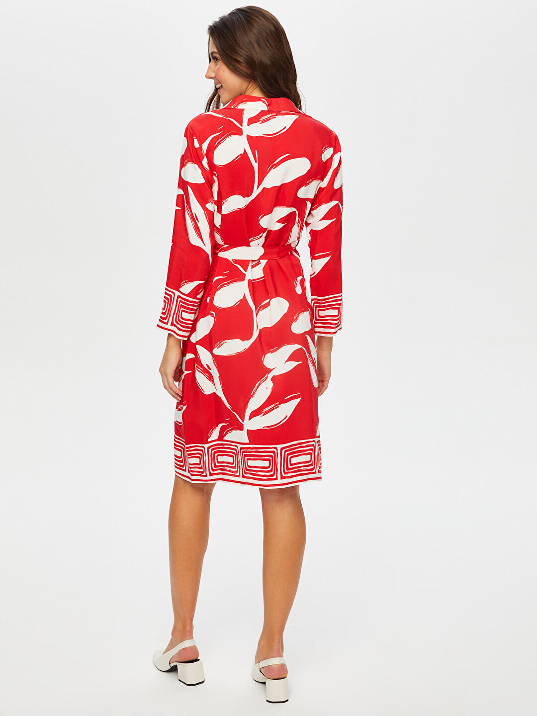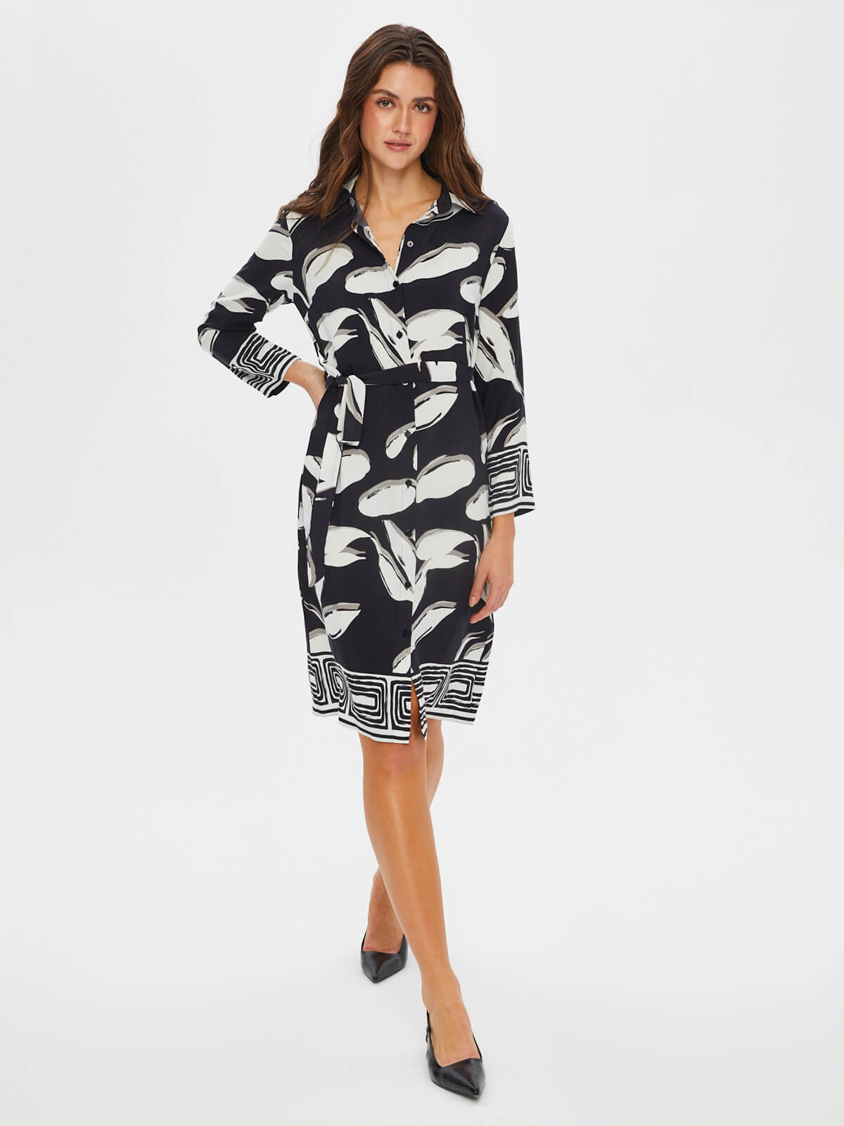 Faik Sönmez Kadın Eteği Sulu Monochrome Yaprak Desen Elbise 25YUS25ELB001%53 Rayon %47 Viskon