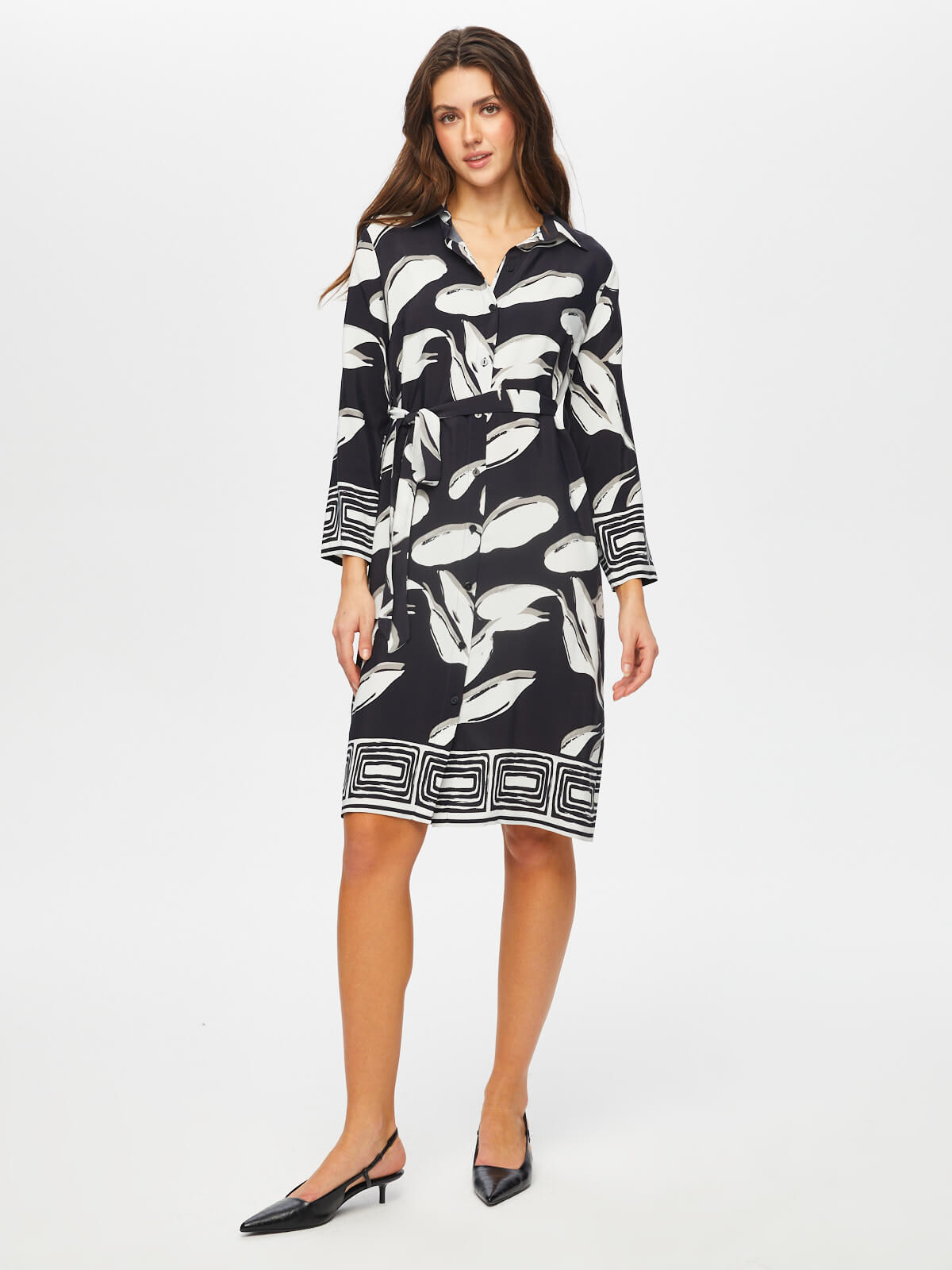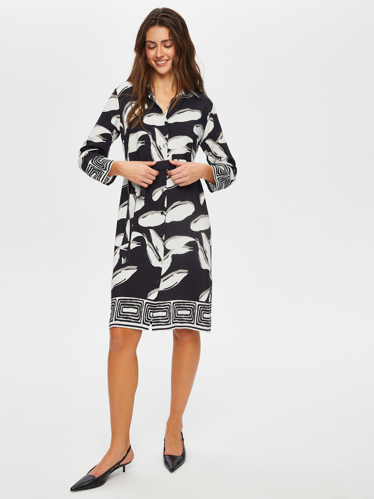Faik Sönmez Kadın Eteği Sulu Monochrome Yaprak Desen Elbise 25YUS25ELB001