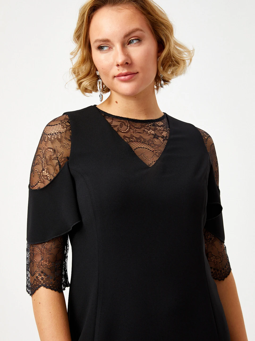 Ürün Adı : Dantel Garnili 3/4 Kollu Abiye Elbise 68107