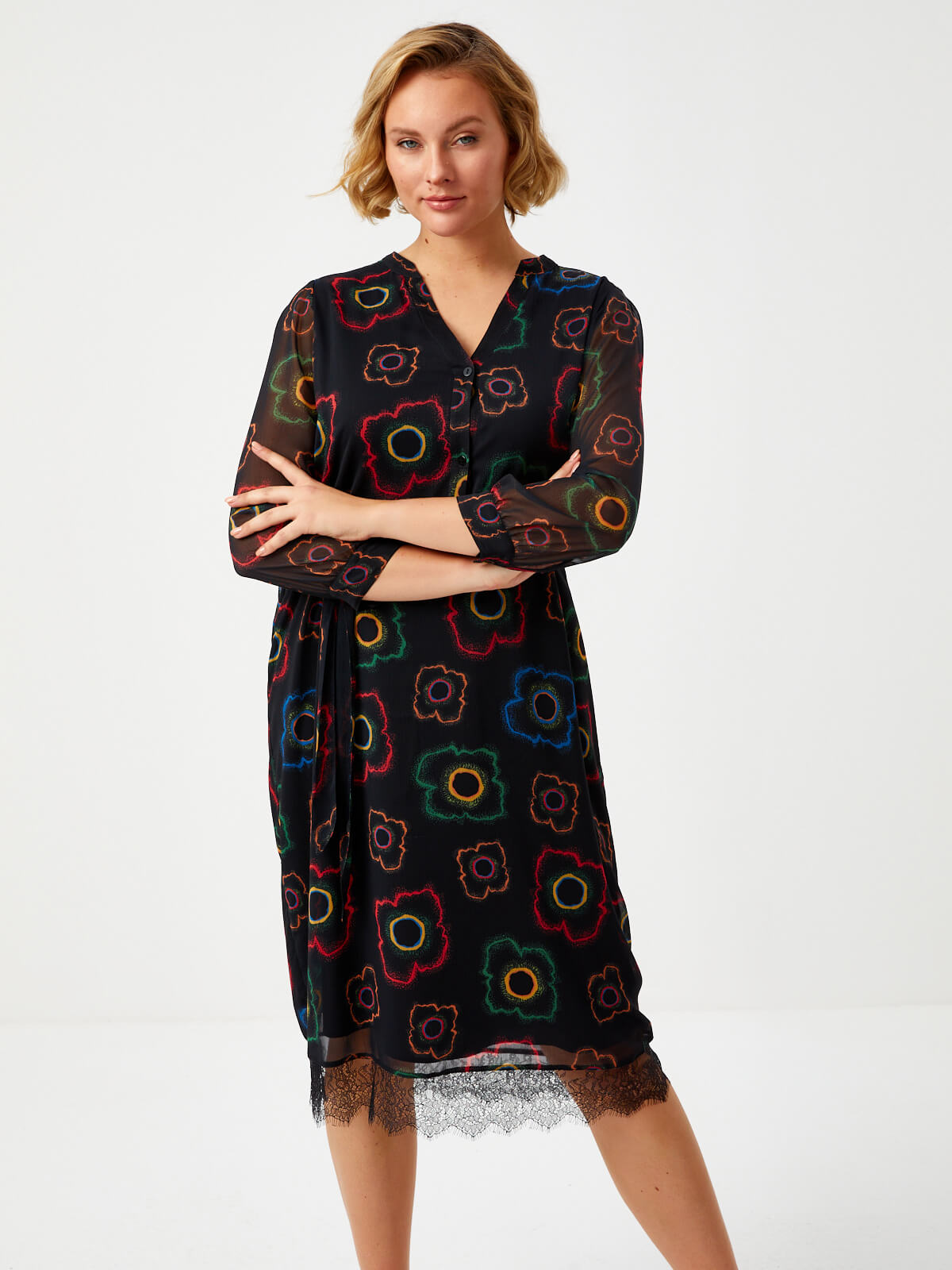 Ürün Adı : Renkli Çiçek Desenli Etek Ucu Dantelli Şifon Elbise 68268