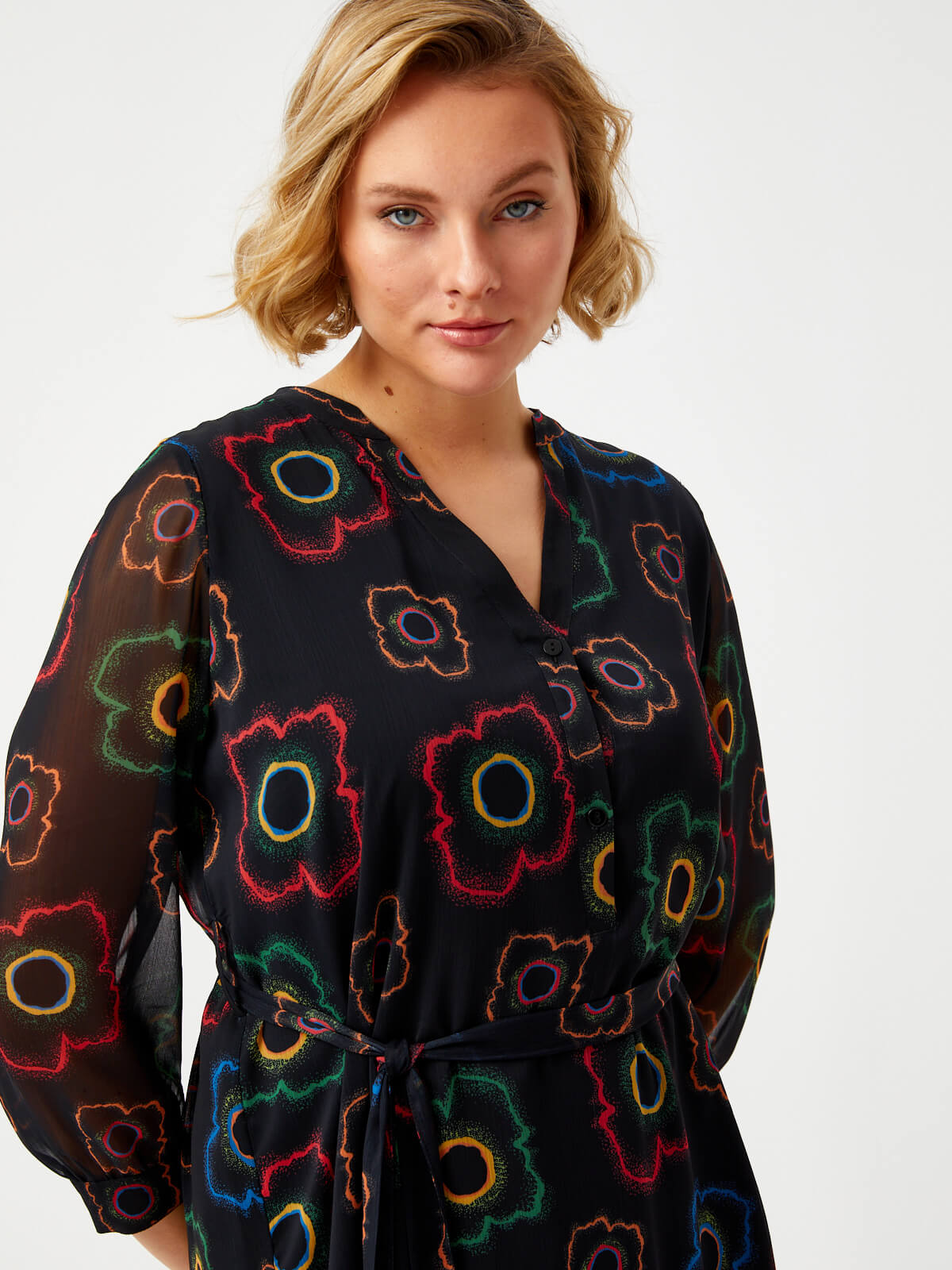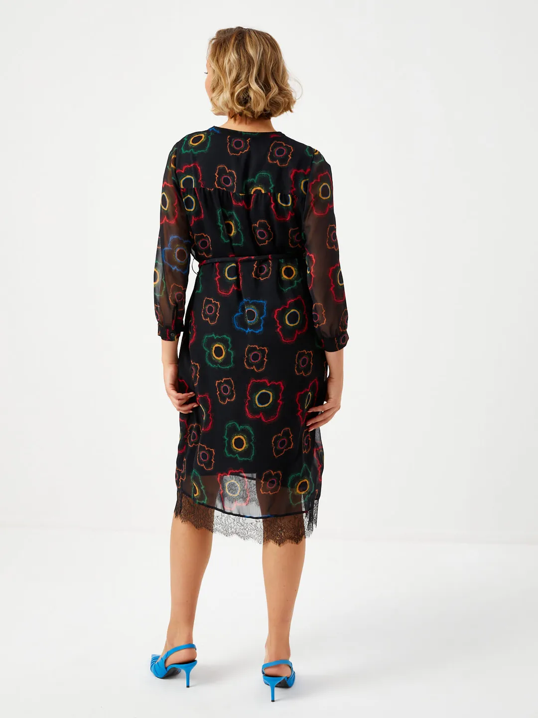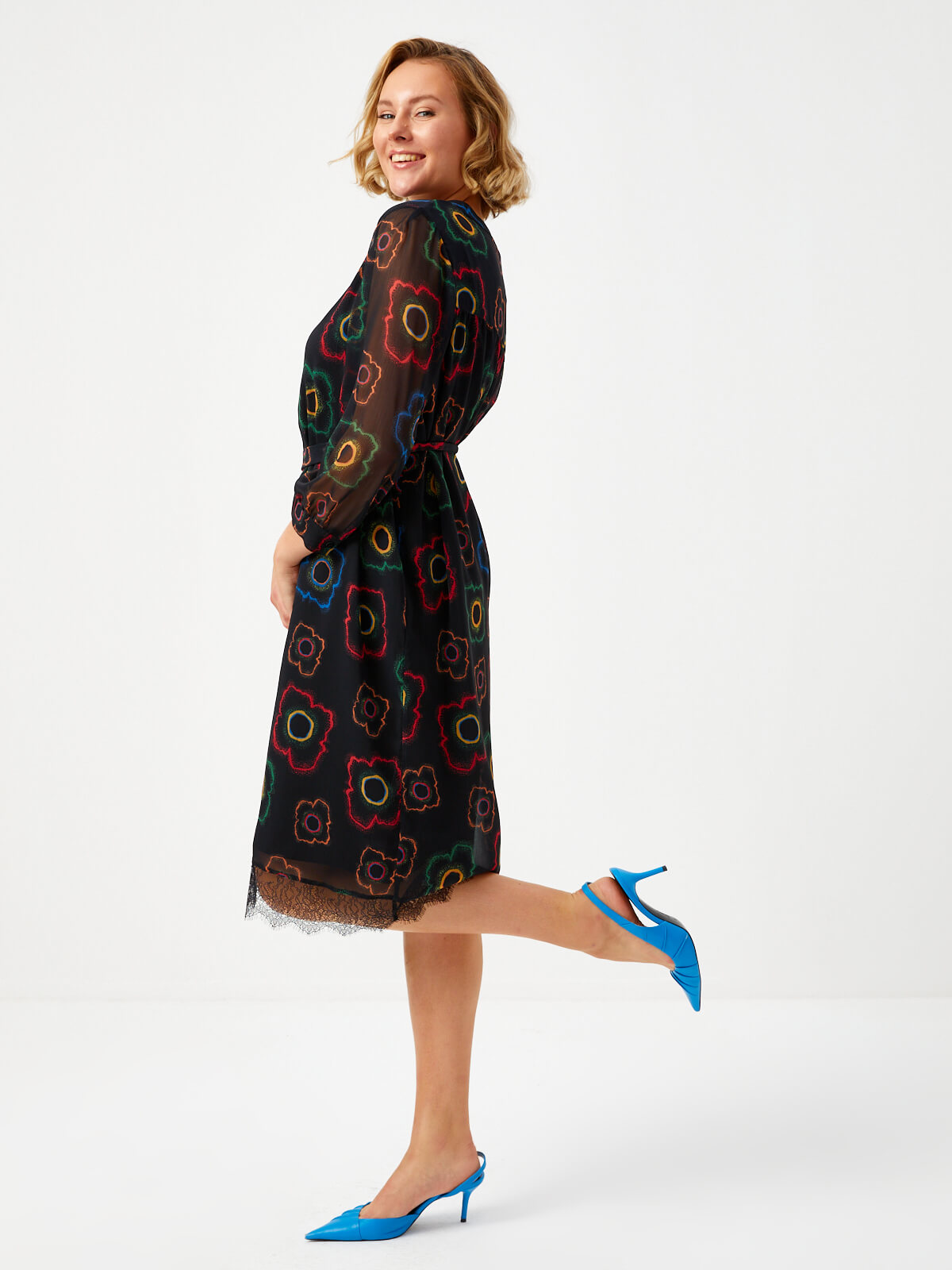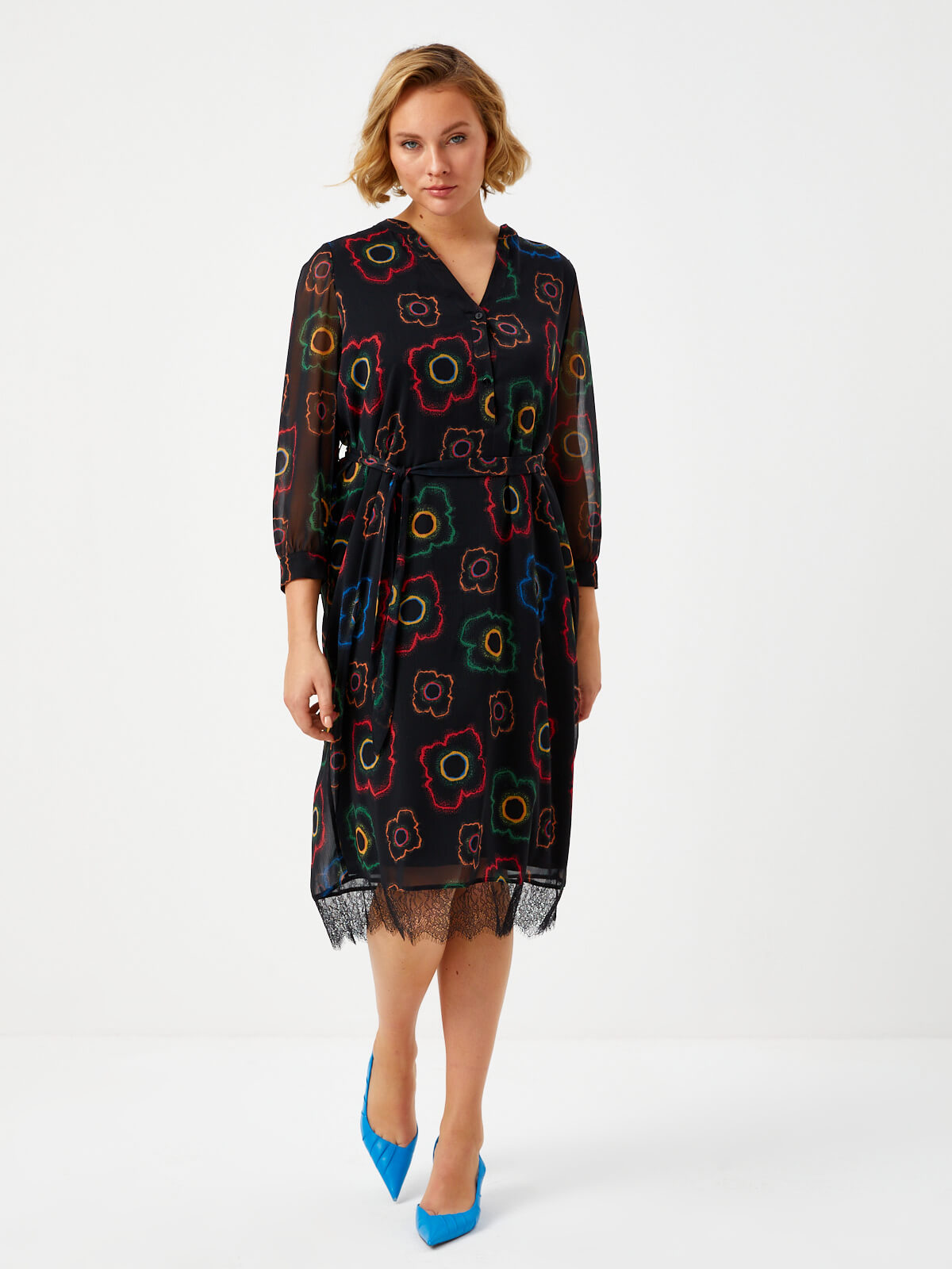 Ürün Adı : Renkli Çiçek Desenli Etek Ucu Dantelli Şifon Elbise 68268