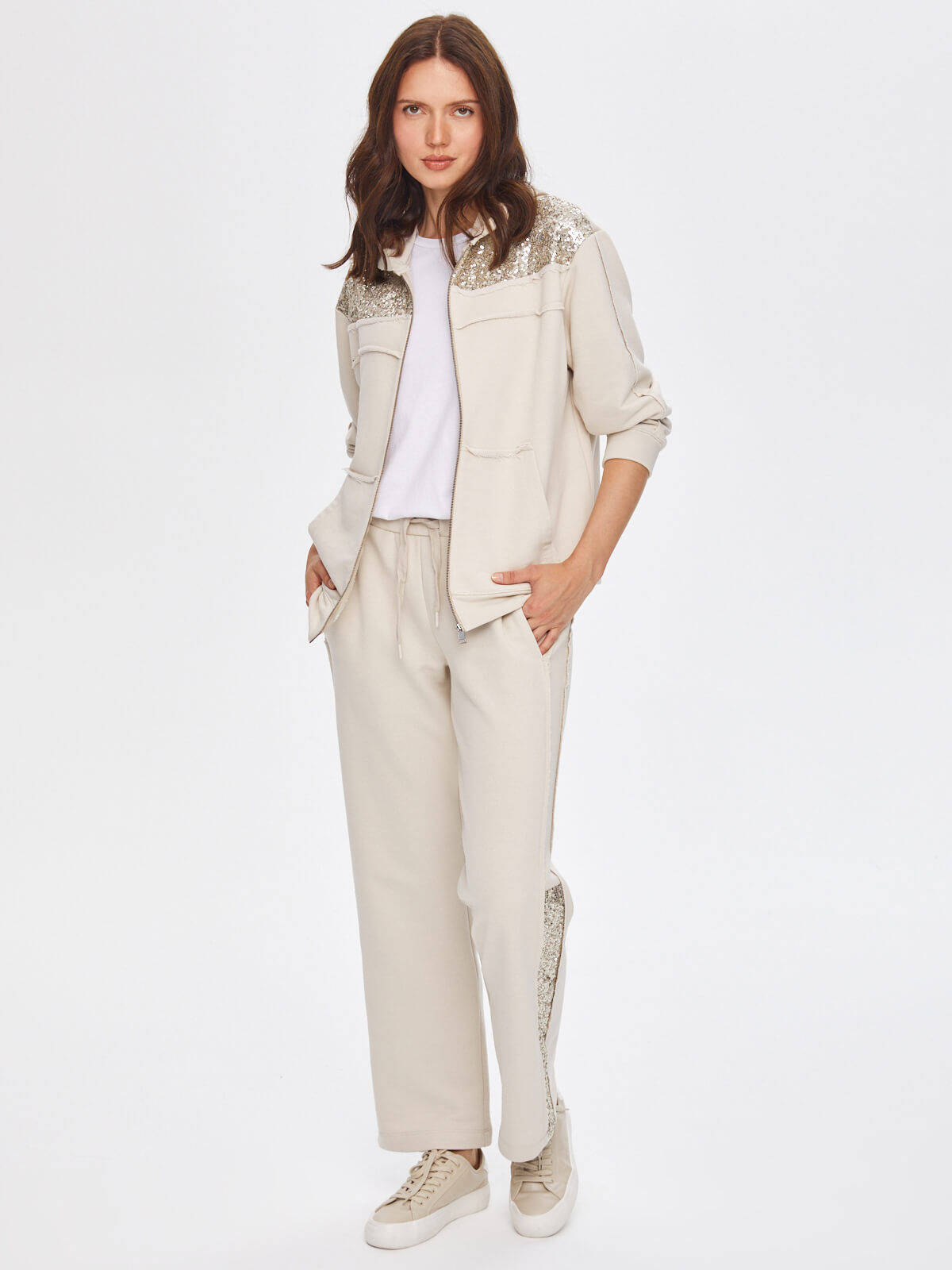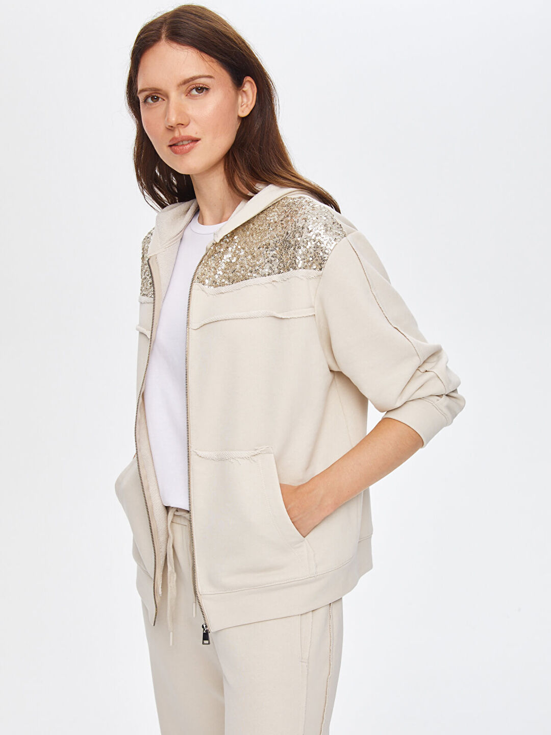 Faik Sönmez Kadın Eşofman Payet Şerit Garnili Kapüşonlu Üstü U69276