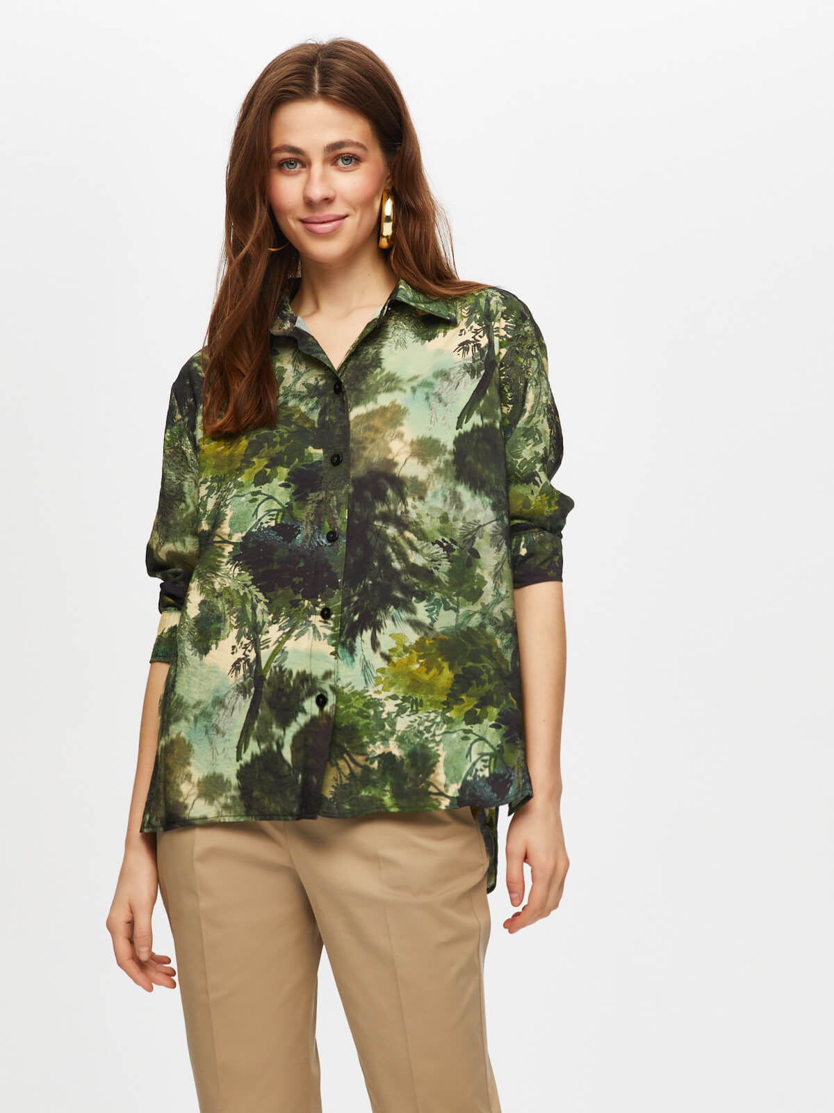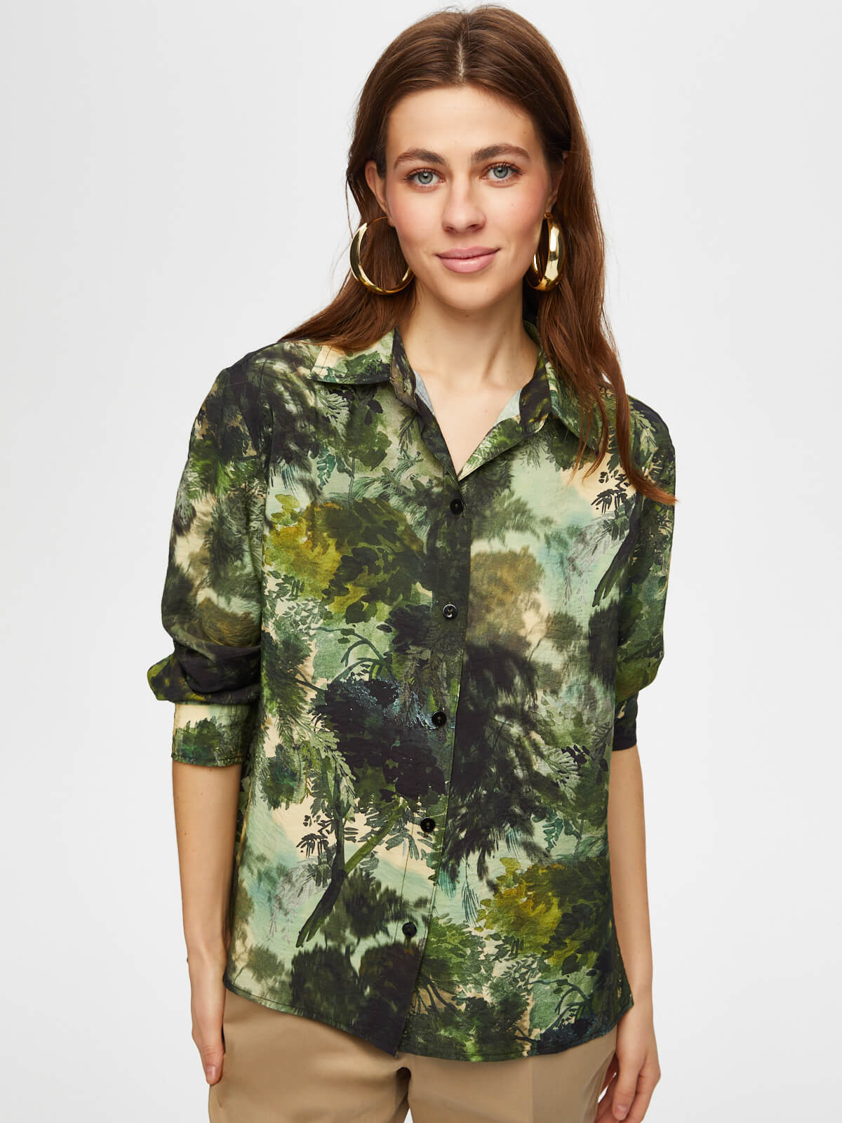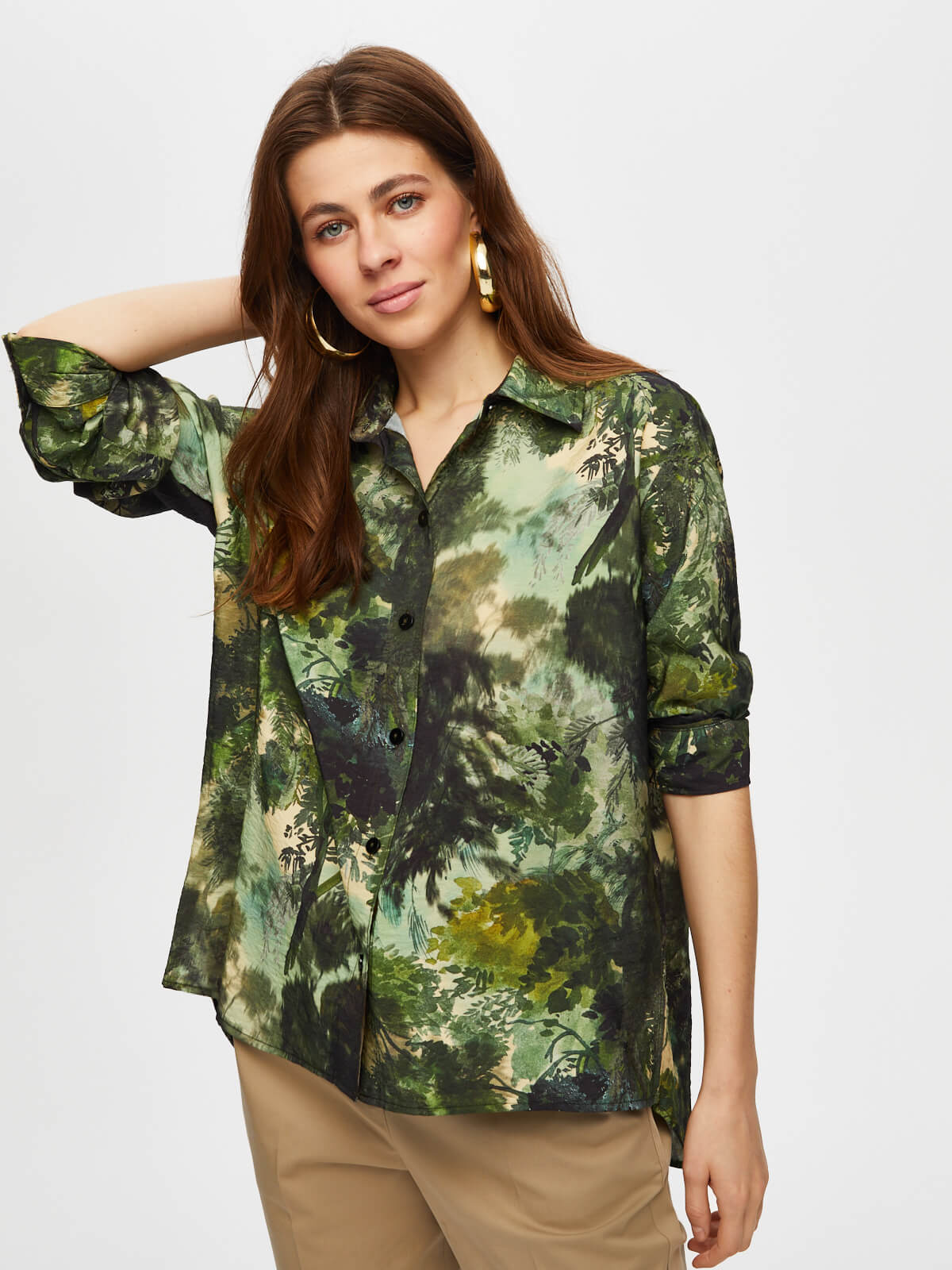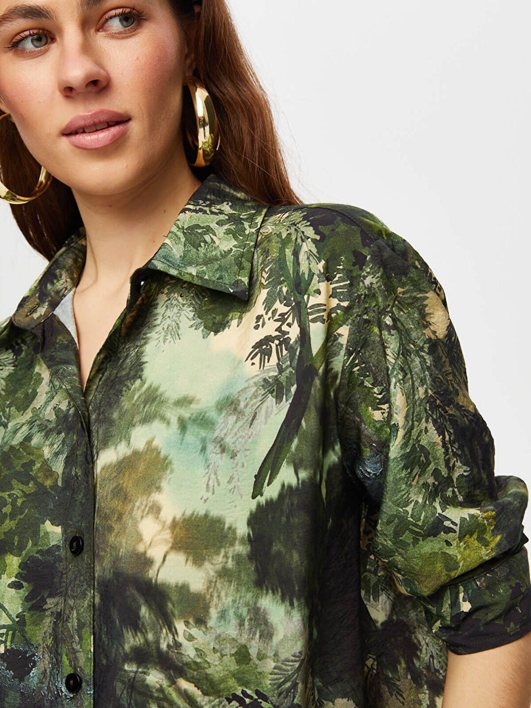 Faik Sönmez Kadın Jungle Desen Viskon Gömlek 25YUS25GML016