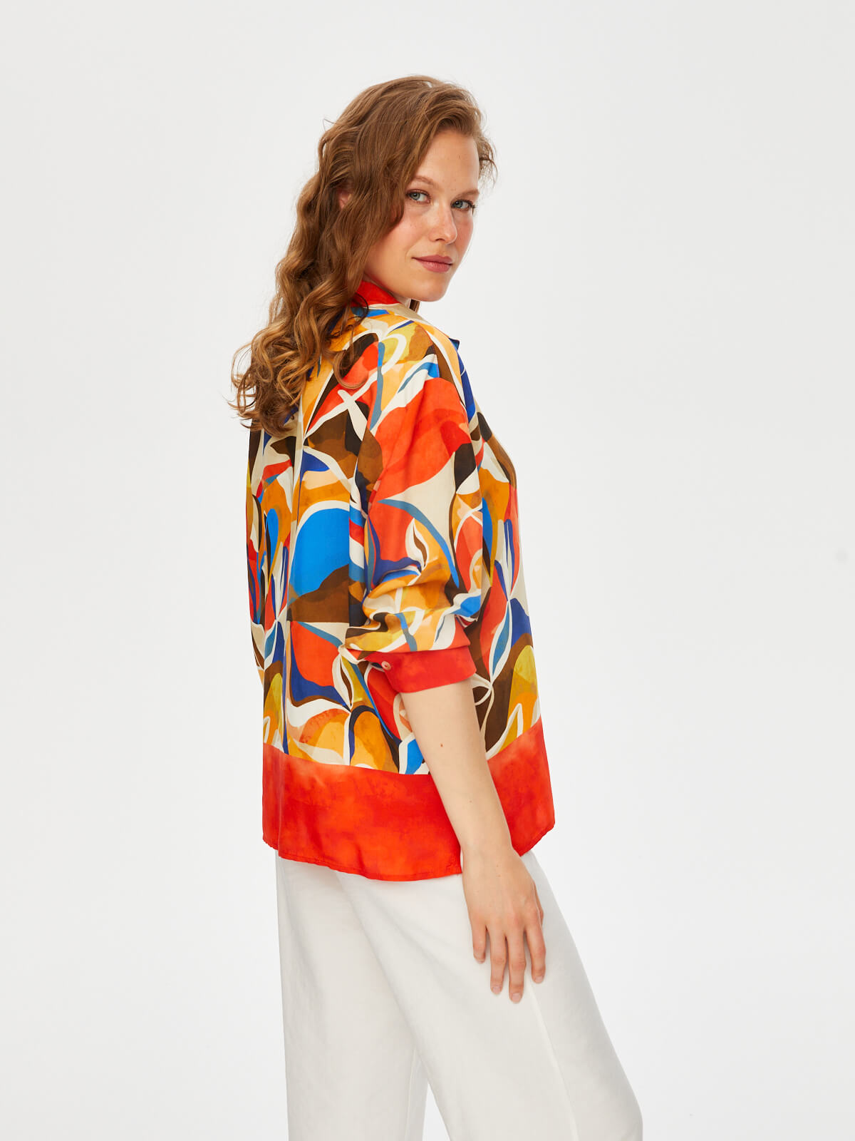 Ürün Adı : Eteği Sulu Soyut Desen Viskongömlek S25GML027