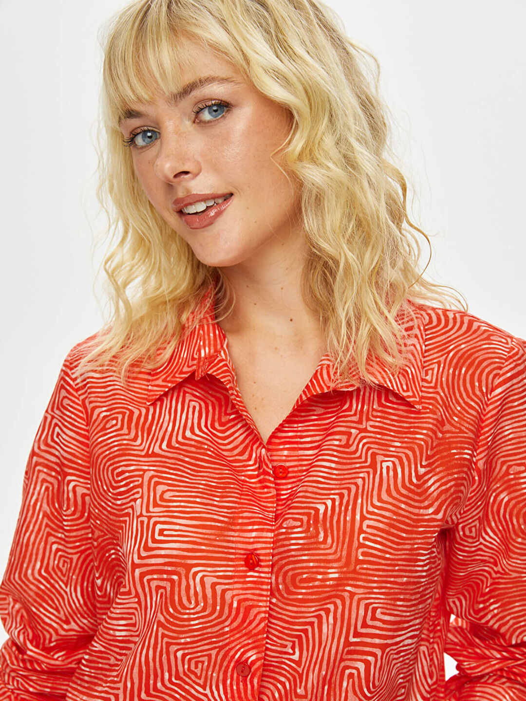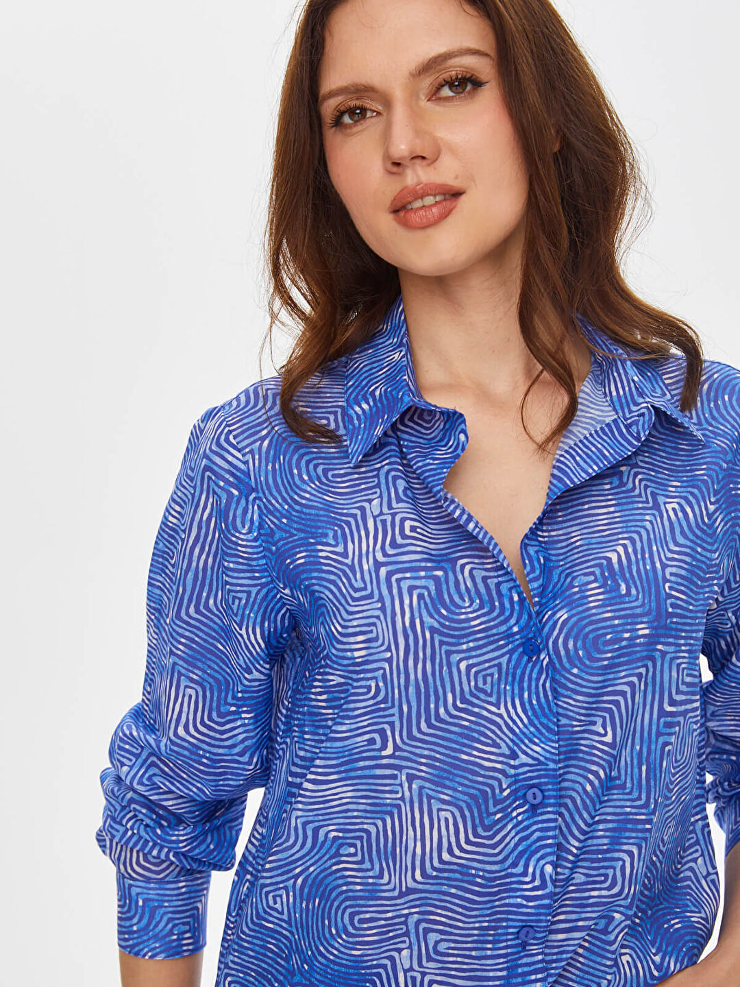 Faik Sönmez Kadın Soyut Çizgisel Desen Pamuk Vual Gömlek U69321