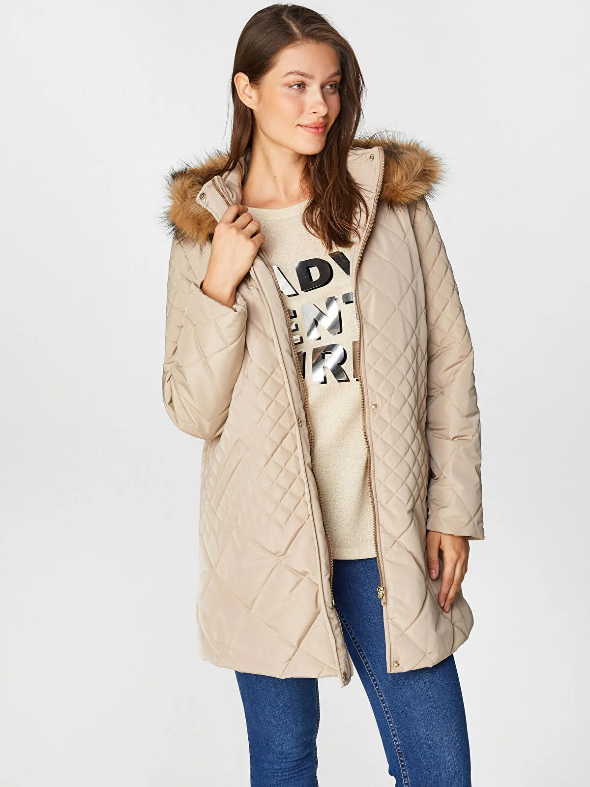 Ürün Kodu : B0004110; Ürün Adı : Kürk Kapüşonlu Kapitone Kaban 00041; Üretim Yeri : Türkiye; %100...