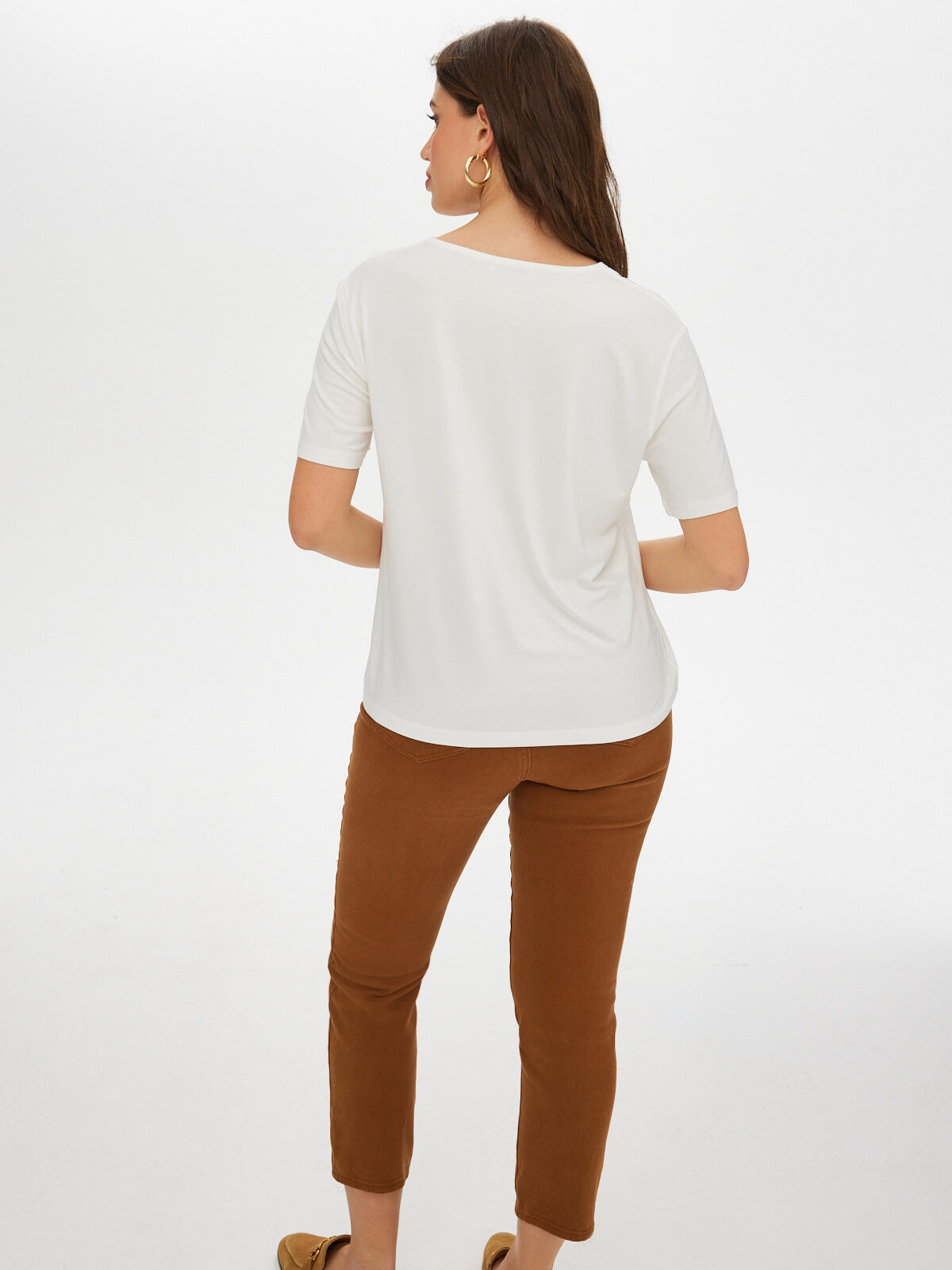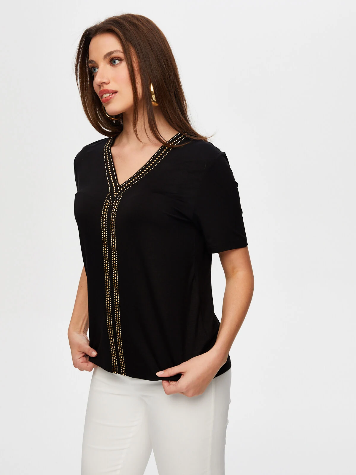 Ürün Adı : Gold Trok Taş Detaylı V Yaka Kısa Kol T-Shirt S25TSH069