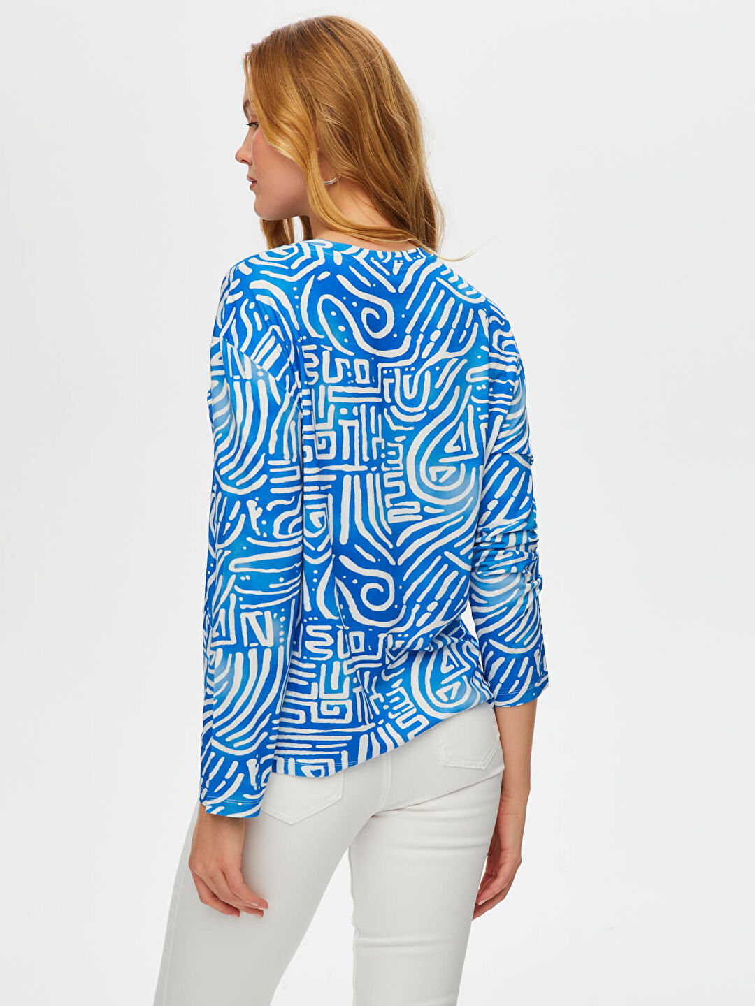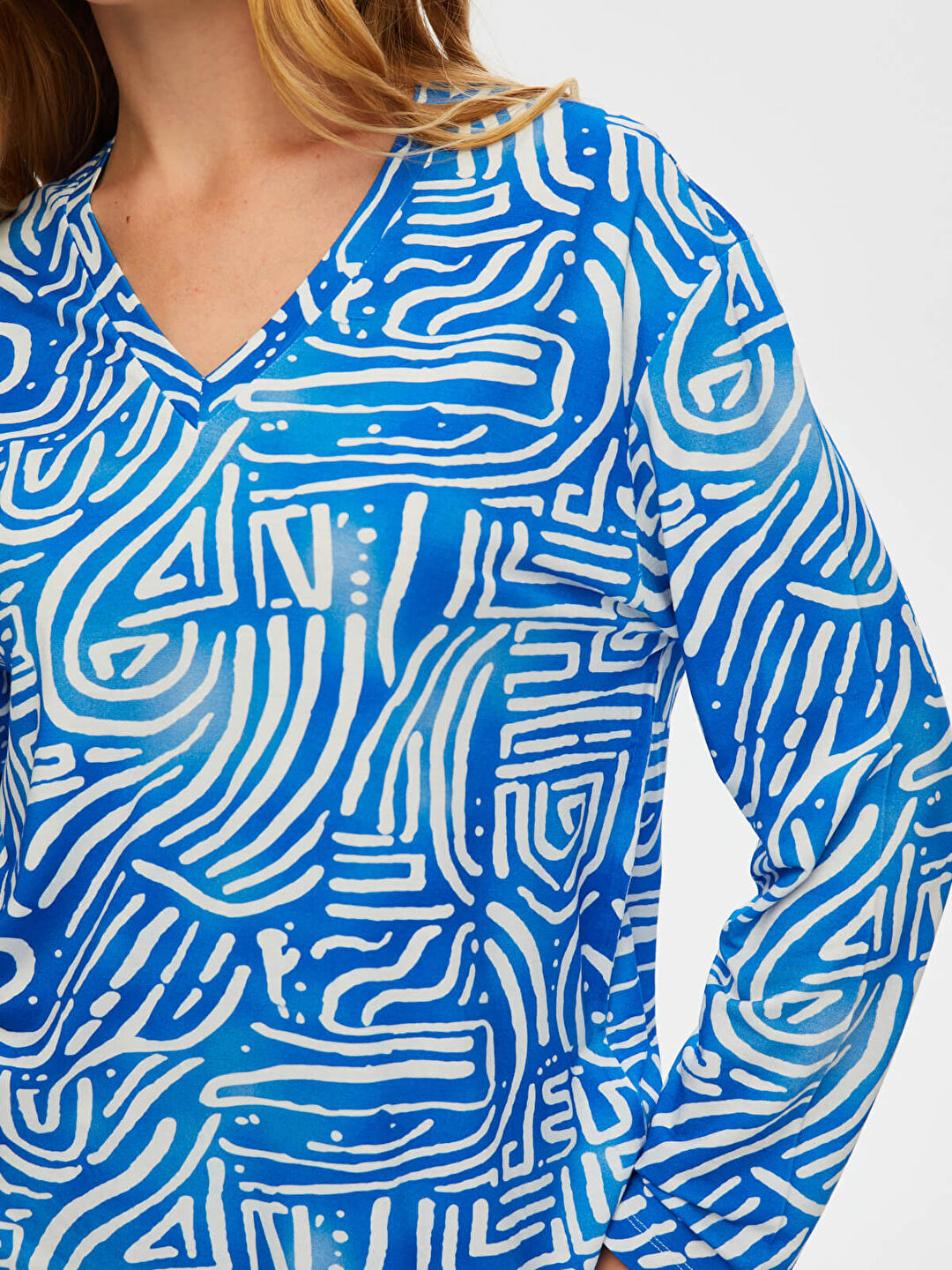 Ürün Adı : Soyut Desen V Yaka 3/4 Kol T-Shirt S25TSH096%95 Viskon %5 Elastan