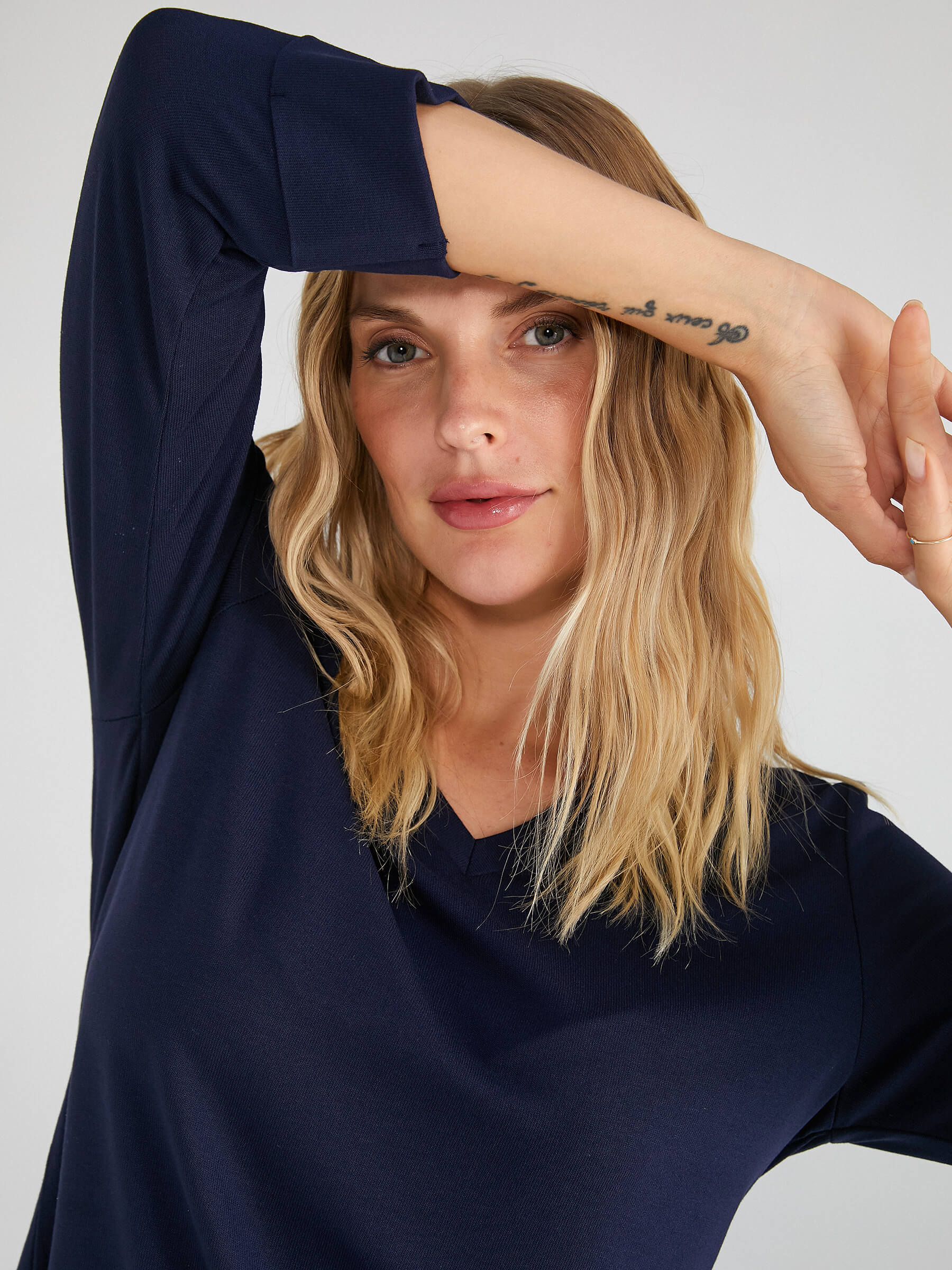 Ürün Kodu : B0001873 Ürün Adı : V Yaka Truvakar Kol T-Shirt 00018 Üretim Yeri : Türkiye %65 Polyester %30 Viskon %5 Elastan Manken Beden : 38 /XS Bel : 63 cm Boy : 1.77 cm Göğüs : 85 cm Basen : 95 cm Kol Boyu : 56 cm