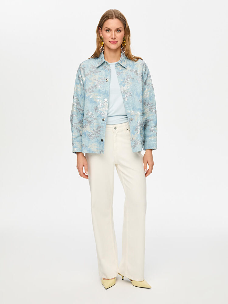 Faik Sönmez Kendinden Nakış Payet Desenli Jean Ceket US26JCK003