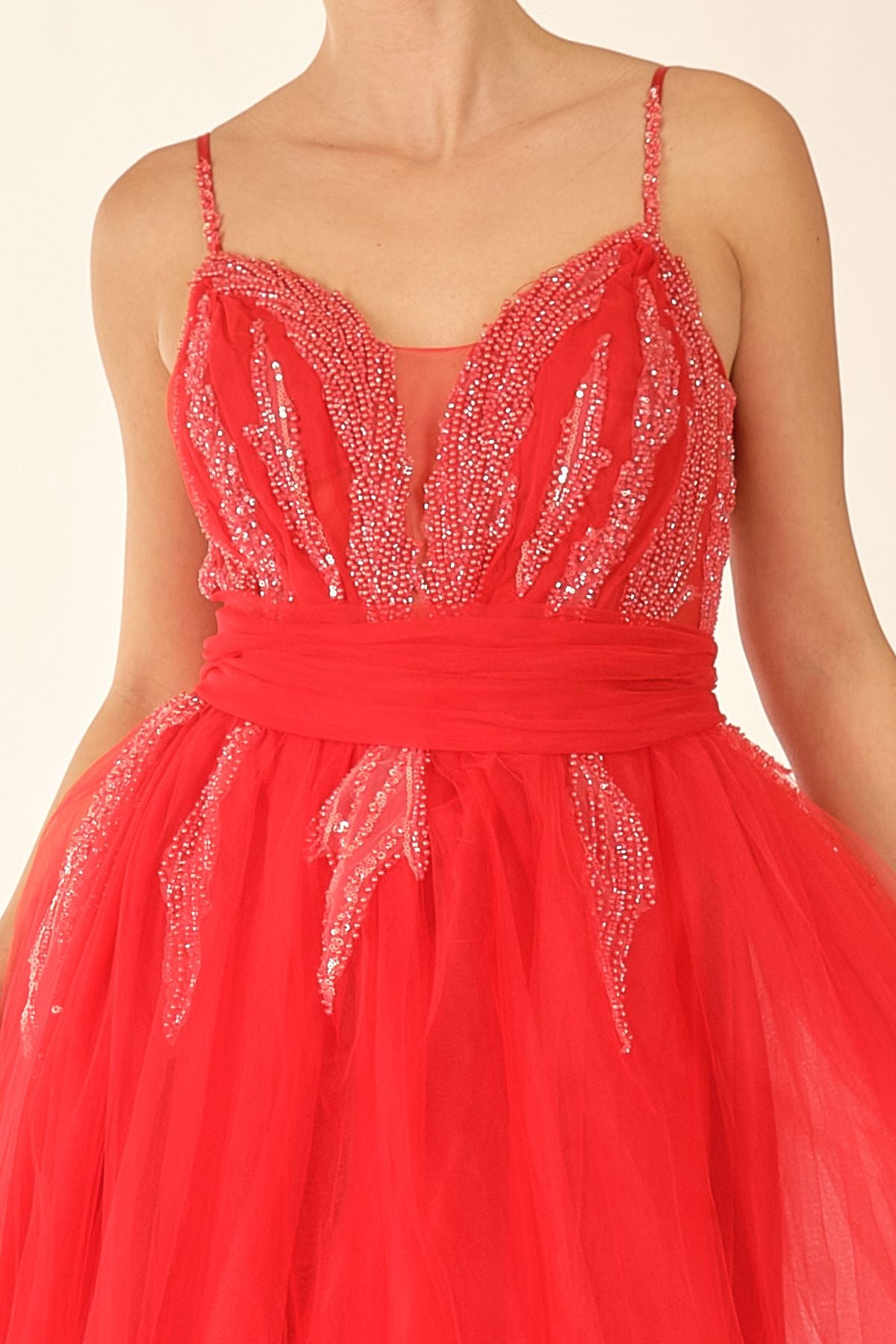 Ürün Özellikleri:; Marka : Favore; Model : Maxi Elbise; Sezon : İlkbahar/Yaz,; Desen : Taşlı; Materyal : % 100 Polyester; Yaka Bilgisi : V Yaka; Kol Bilgisi : İp Askılı; Kalıp Bilgisi : Standart Fit; Manken Ölçüsü : Boy : 1.74 cm / Göğüs : 81 cm / Bel : 60 cm / Basen : 89 cm / Beden : S;
