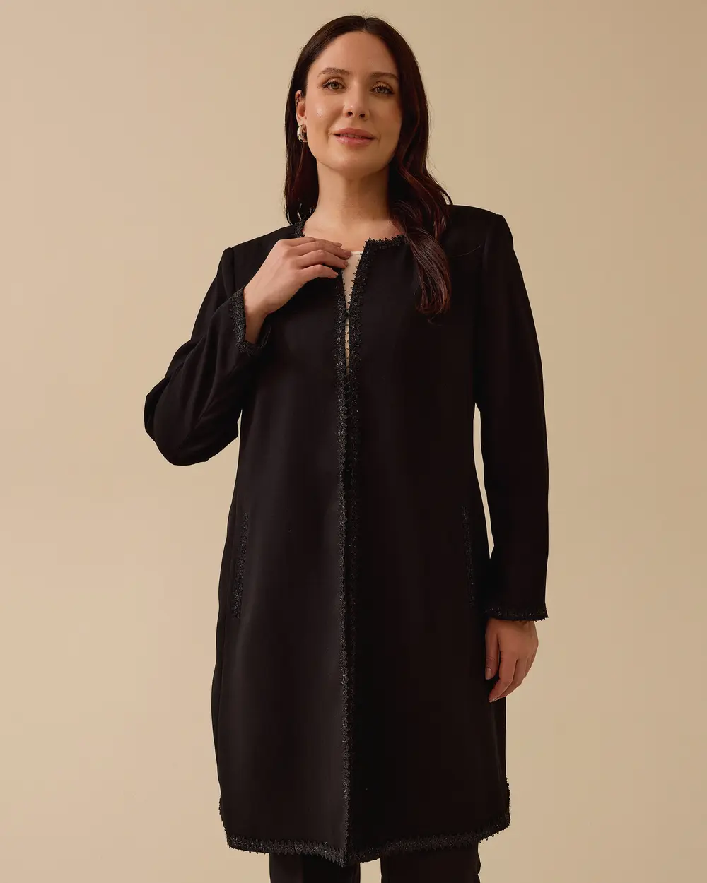 Büyük Beden Sıfır Yaka Şık Ceket: Modern ve zarif tasarımıyla sıfır yaka bu ceket, her kombine şıklık katarken rahat bir kullanım sunar.