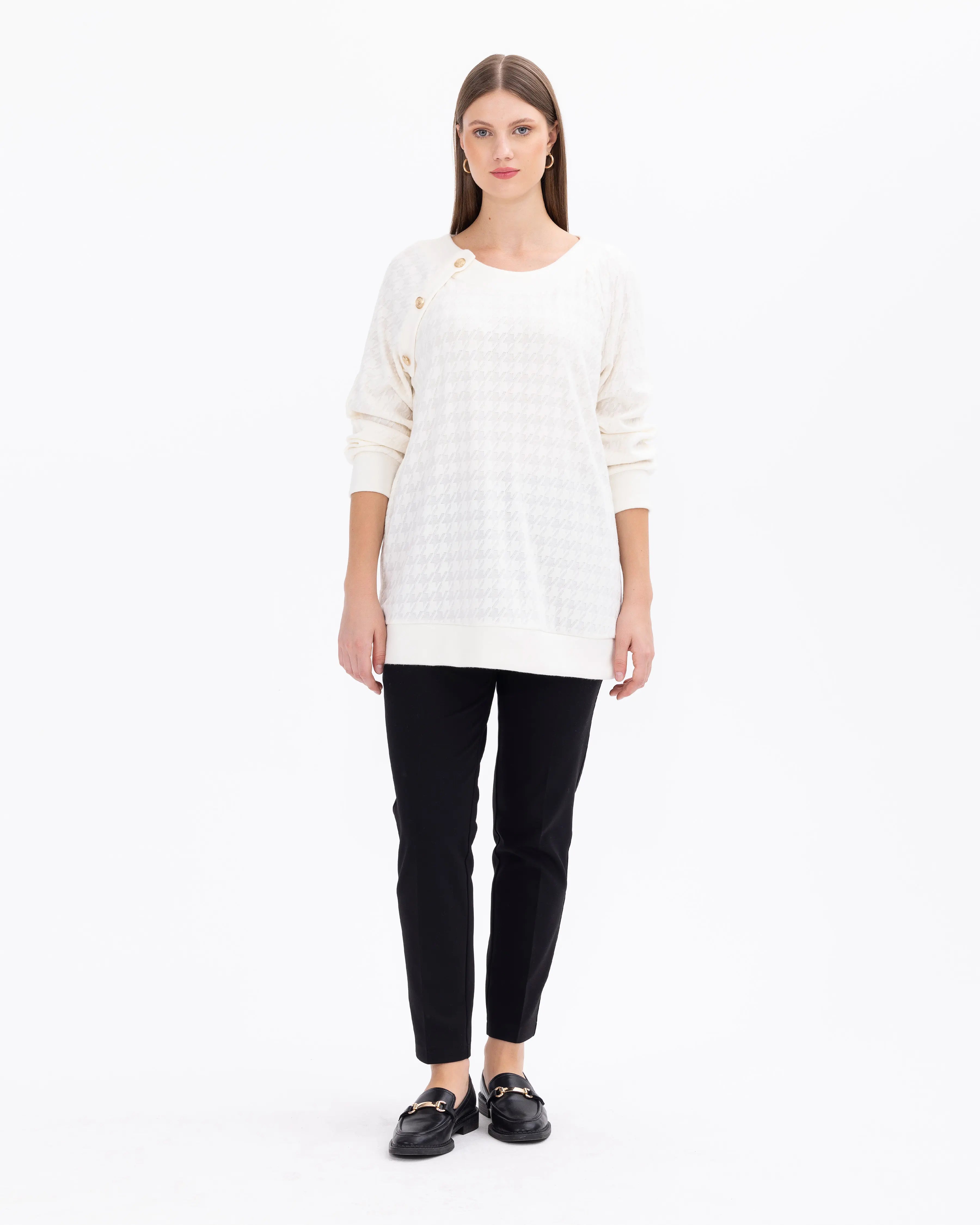 Bu büyük beden örme bluz, şıklığı ve rahatlığı bir araya getiriyor. Desenli dokusu ile dikkat çekerken, düğme...