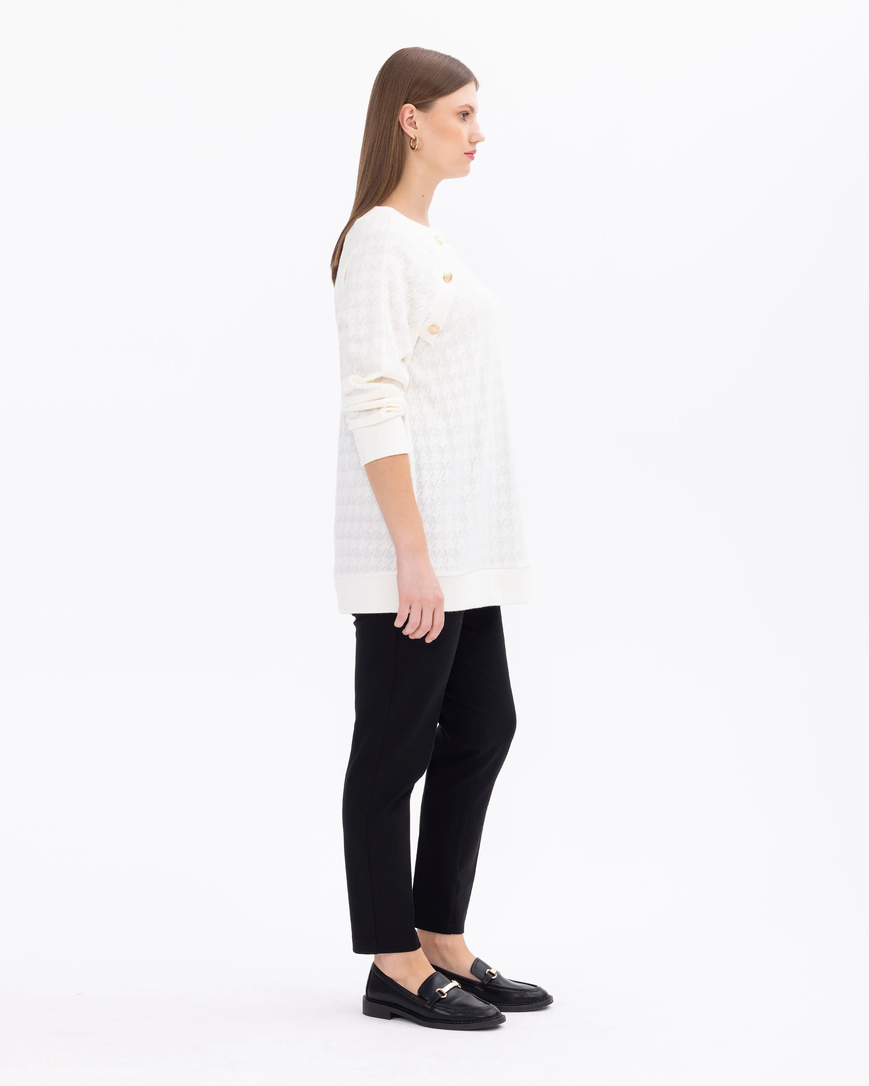 Bu büyük beden örme bluz, şıklığı ve rahatlığı bir araya getiriyor. Desenli dokusu ile dikkat çekerken, düğme detayları bluza özgün bir hava katıyor. Geniş kesimi ve yumuşak dokusu sayesinde her gün rahatlıkla giyebilirsiniz. Bu bluz, büyük beden giyenler için tasarlanmış ve tarzınızı ön plana çıkaracak harika bir seçenek sunuyor.; Ürün Özellikleri:; Reglan Kol; Yuvarlak Yaka; Basen Altı Boy; Manşetli; Triko Görünümlü; Ribanalı; Kazayağı; Düğme Detaylı; Örme Kumaş; Kumaş İçeriği:29 Poliester 49 Viskoz 19 Naylon 3 Elastan; Manken Ölçüleri:; Örnek Beden: 44; Manken Boyu 178; Ölçüler: 97 / 76 / 108;