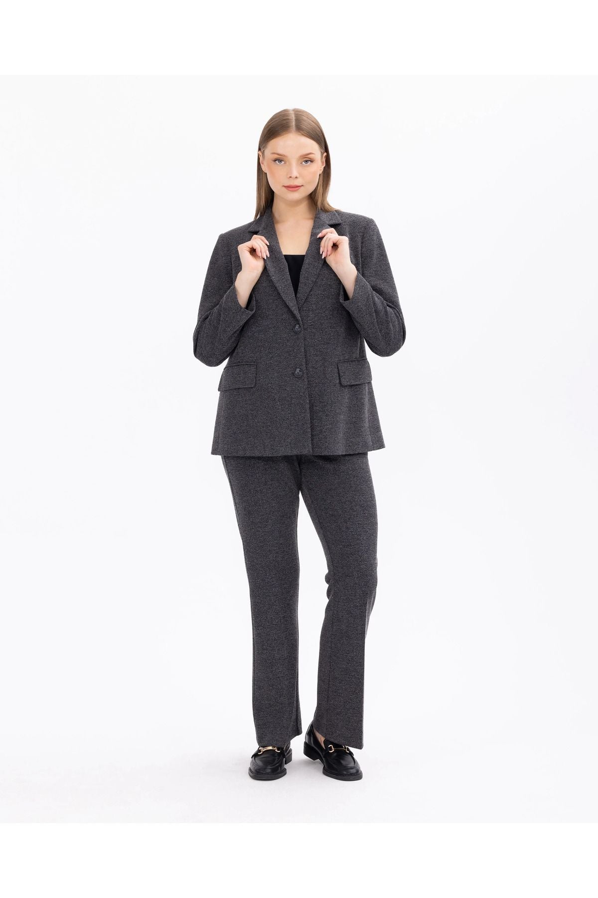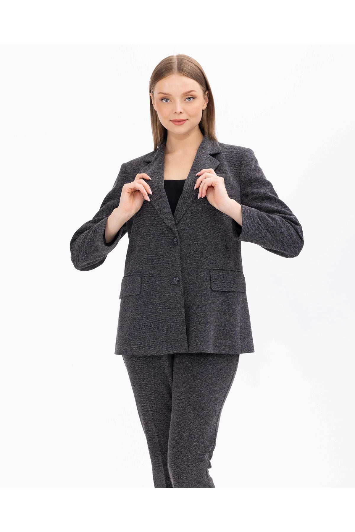 Büyük bedenler için özel olarak tasarlanmış bu klasik kesim ceket, zarif ve şık bir görünüm sunar. Geniş cepleri ile hem şıklığı hem de işlevselliği bir araya getirir. Kaliteli malzemelerden üretilen bu ceket, konforlu bir giyim deneyimi sunar. Gardırobunuzun vazgeçilmez parçalarından biri olacak.; Ürün Özellikleri:; Uzun Kol; Çift Düğmeli; Düğmeli; Takma Kol; Basen Altı Boy; Klasik Kesim; Cepli; Astarlı; Kumaş İçeriği:86 Poliester 14 Viskoz; Örnek Beden: 44; Manken Boyu 180; Ölçüler: 102 / 80 / 104;