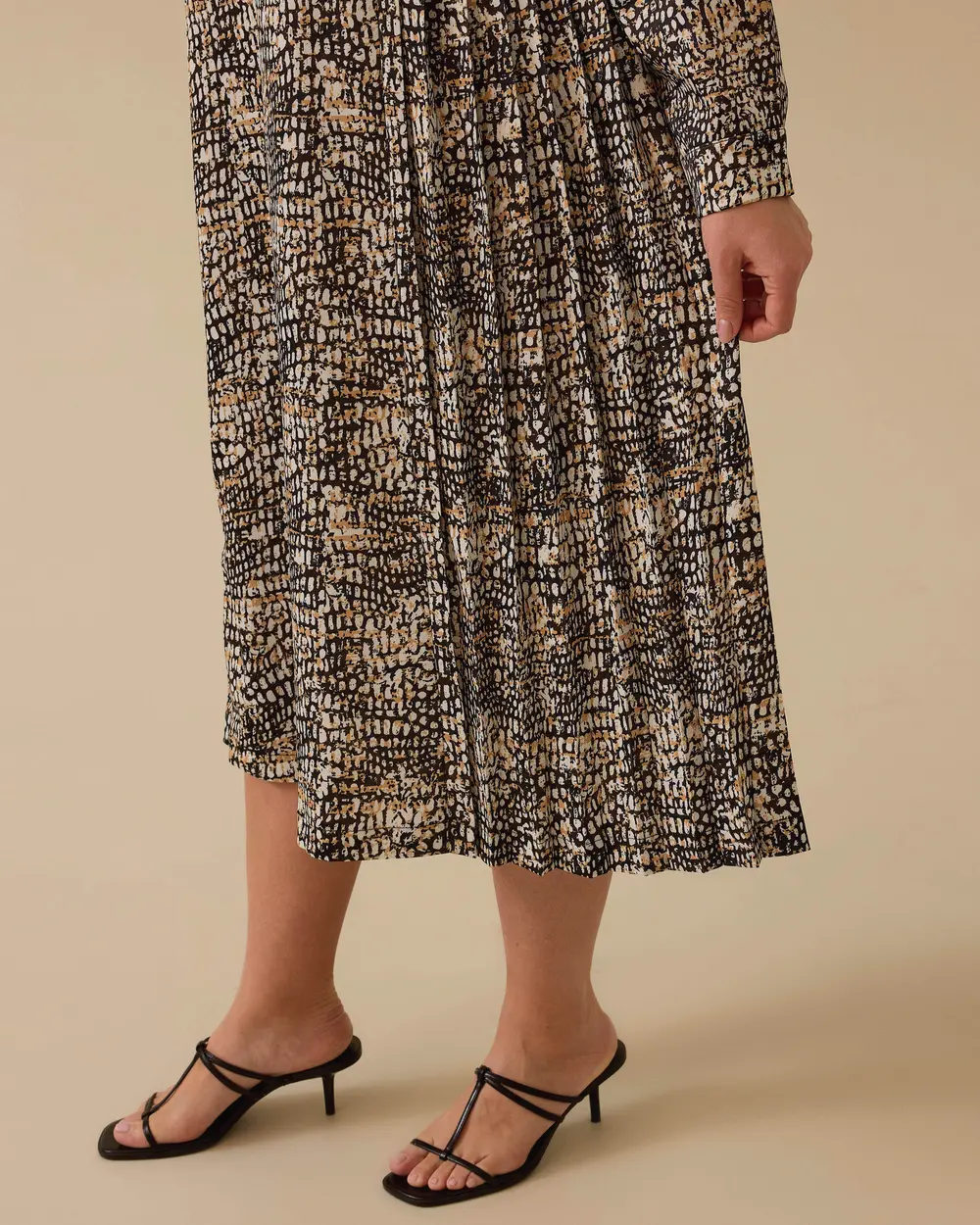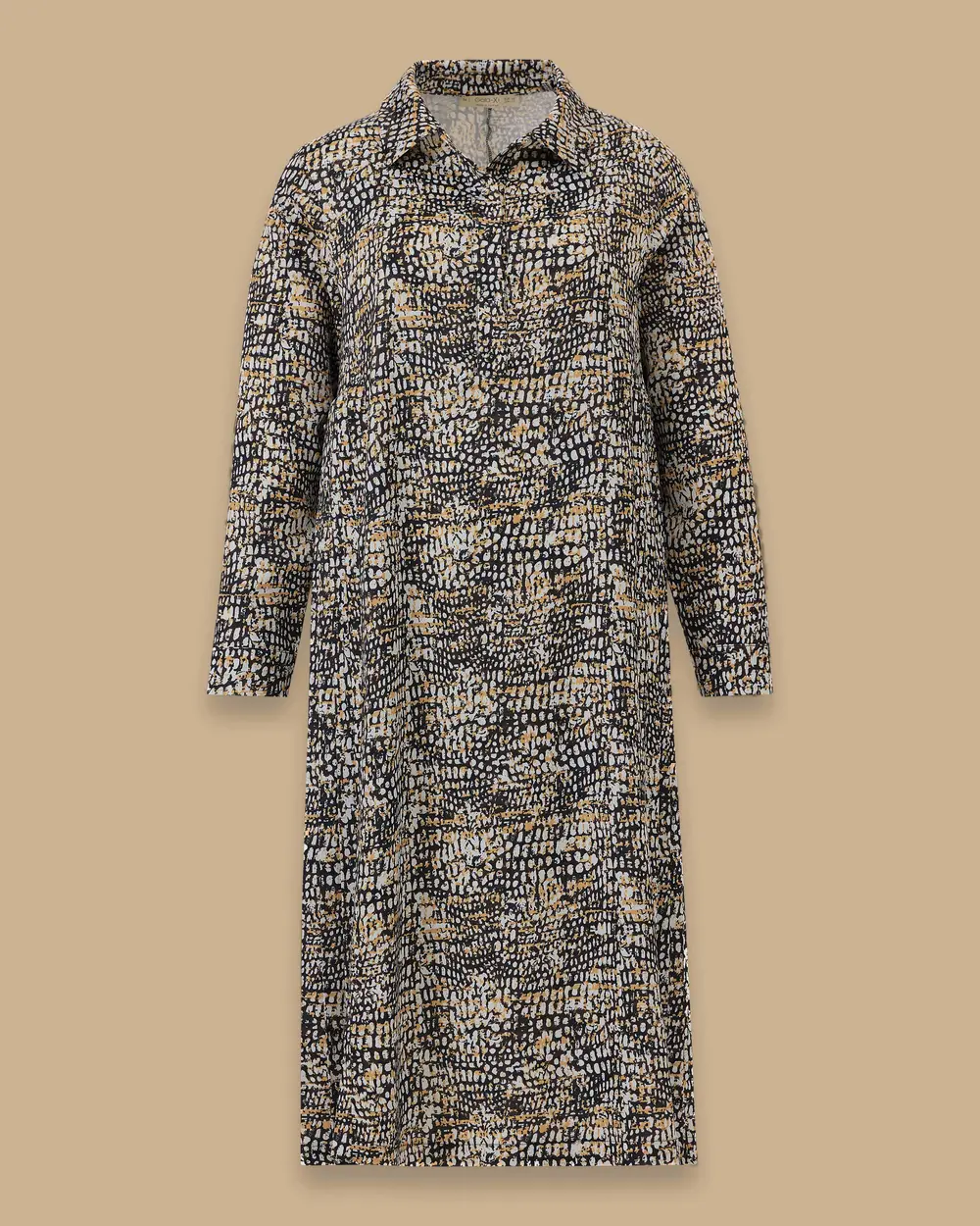 Büyük Beden Desenli Gömlek Yaka Elbise, göz alıcı desenleri ve gömlek yaka tasarımıyla modern bir stil sunar; her mevsim rahatlıkla giyebilirsiniz.