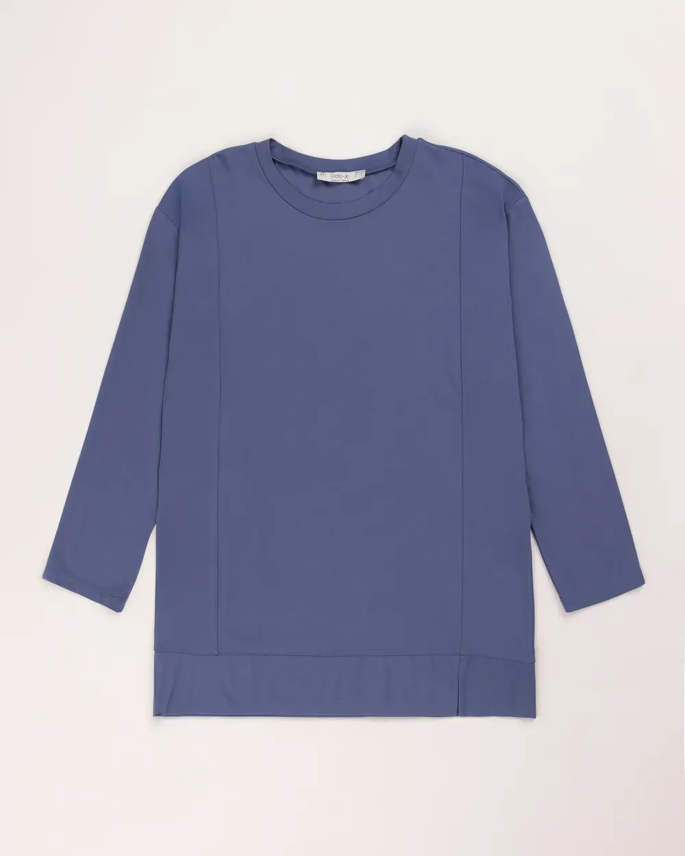 Büyük Beden Yuvarlak Yaka Basic Tunik, uzun kollu tasarımı ile sade ve rahat bir tarz sunar.Bu tunik, konforlu kesimi ile gün boyu rahatlık sağlar.