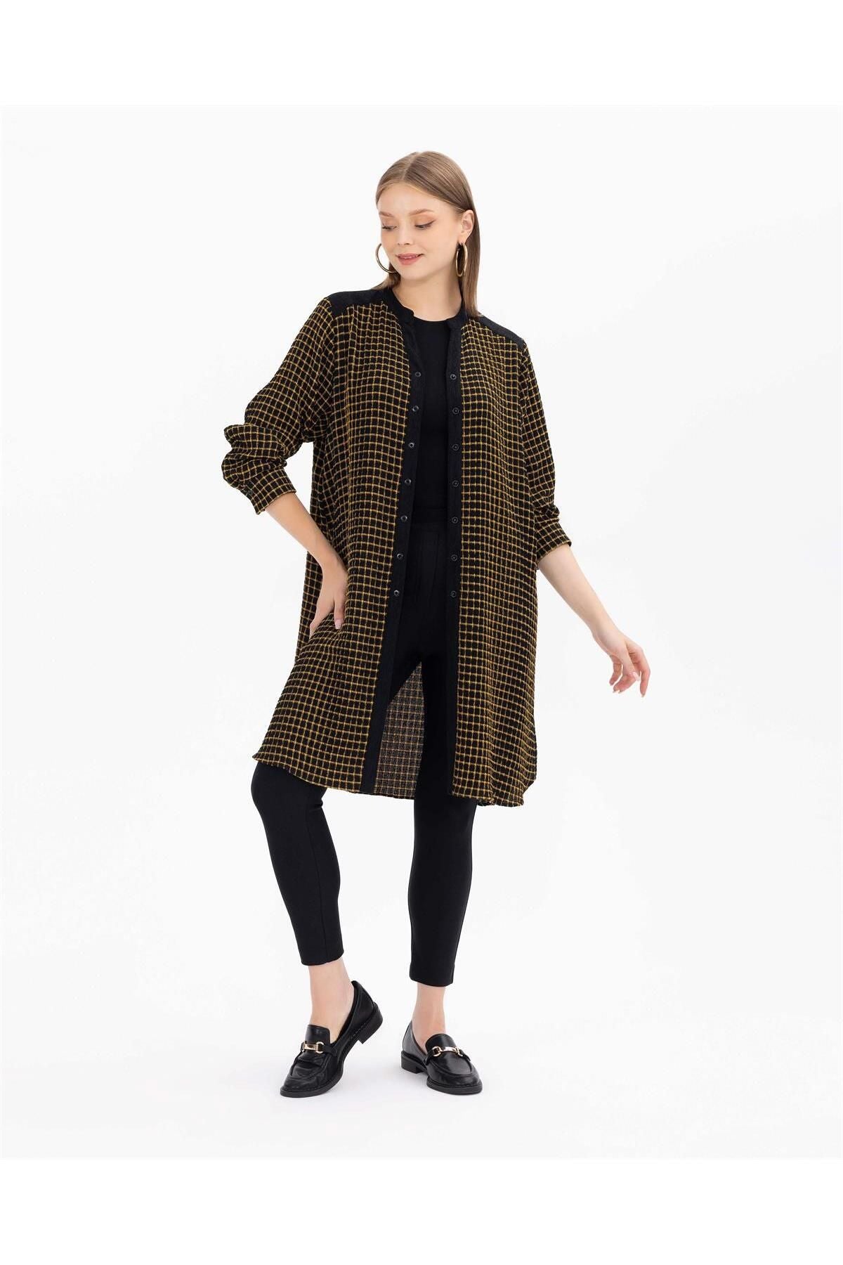 Bu büyük beden tunik, kareli deseni ve gofre kumaşı ile hem şık hem de rahat bir seçenek...