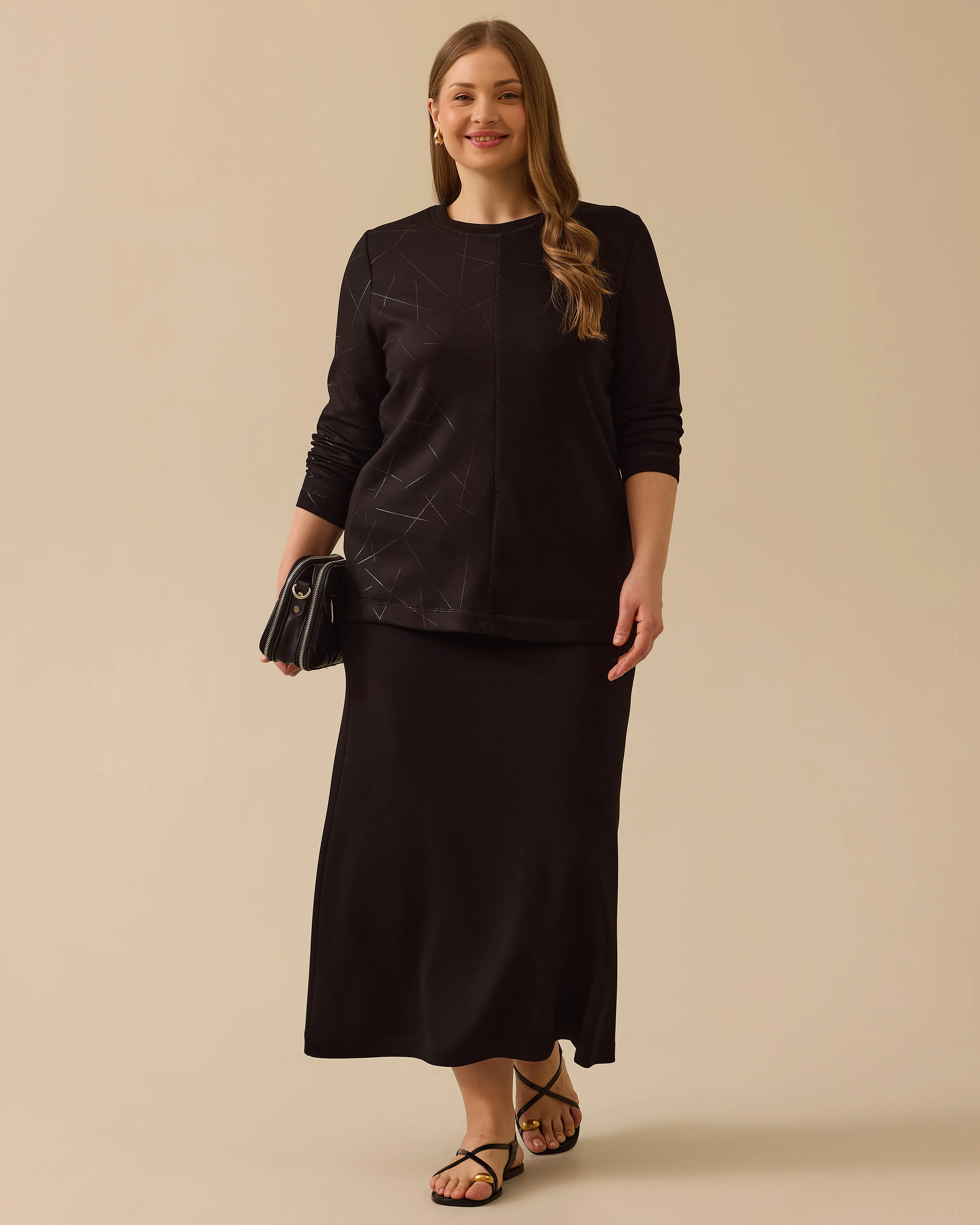 Gala-xi imzalı minimalist midi uzun etek ile şıklığınızı her an taşıyın! Yumuşak ve konforlu kumaşıyla gün boyu...