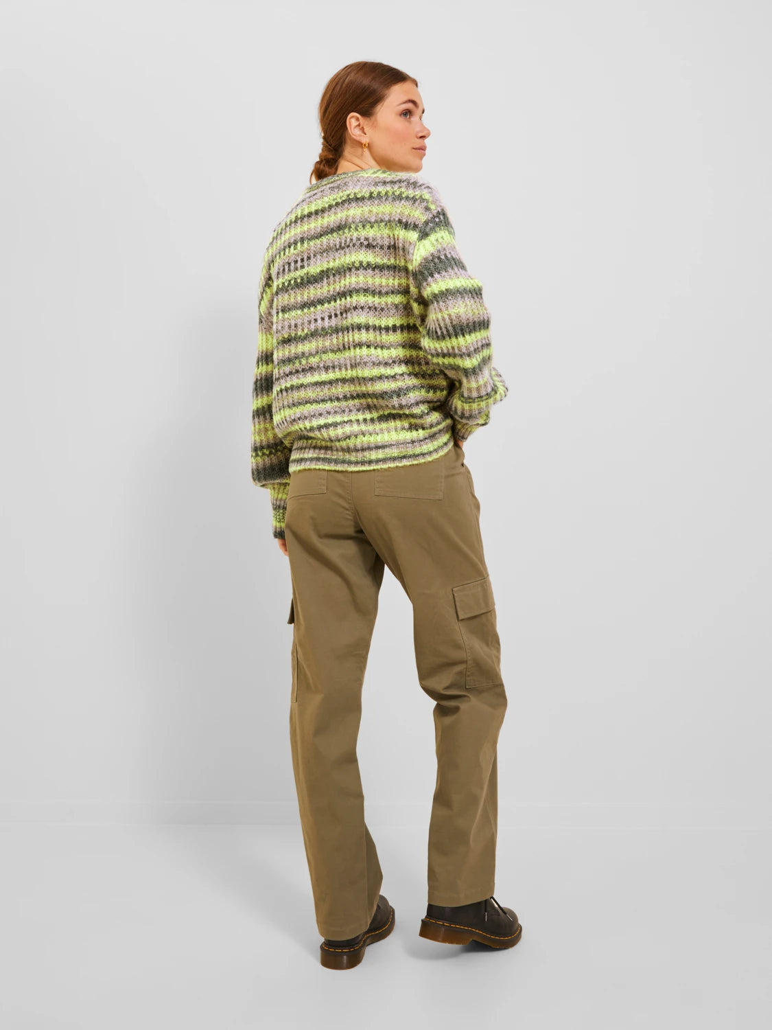ÜRÜN AÇIKLAMASI:; Soğuk kış günleri için sıcacık bir örgü.; Renk sınıflandırması.; - Ürün Tipi : Örme kazak; - Boyun: O-Yaka; - Kol: Uzun kollu; - Kollar : Düşük omuzlar; - Uzunluk/boyut : Normal; KUMAŞ BİLEŞİMİ VE YIKAMA TALİMATLARI:; %65 Akrilik, %35 Geri Dönüştürülmüş Polyester;
