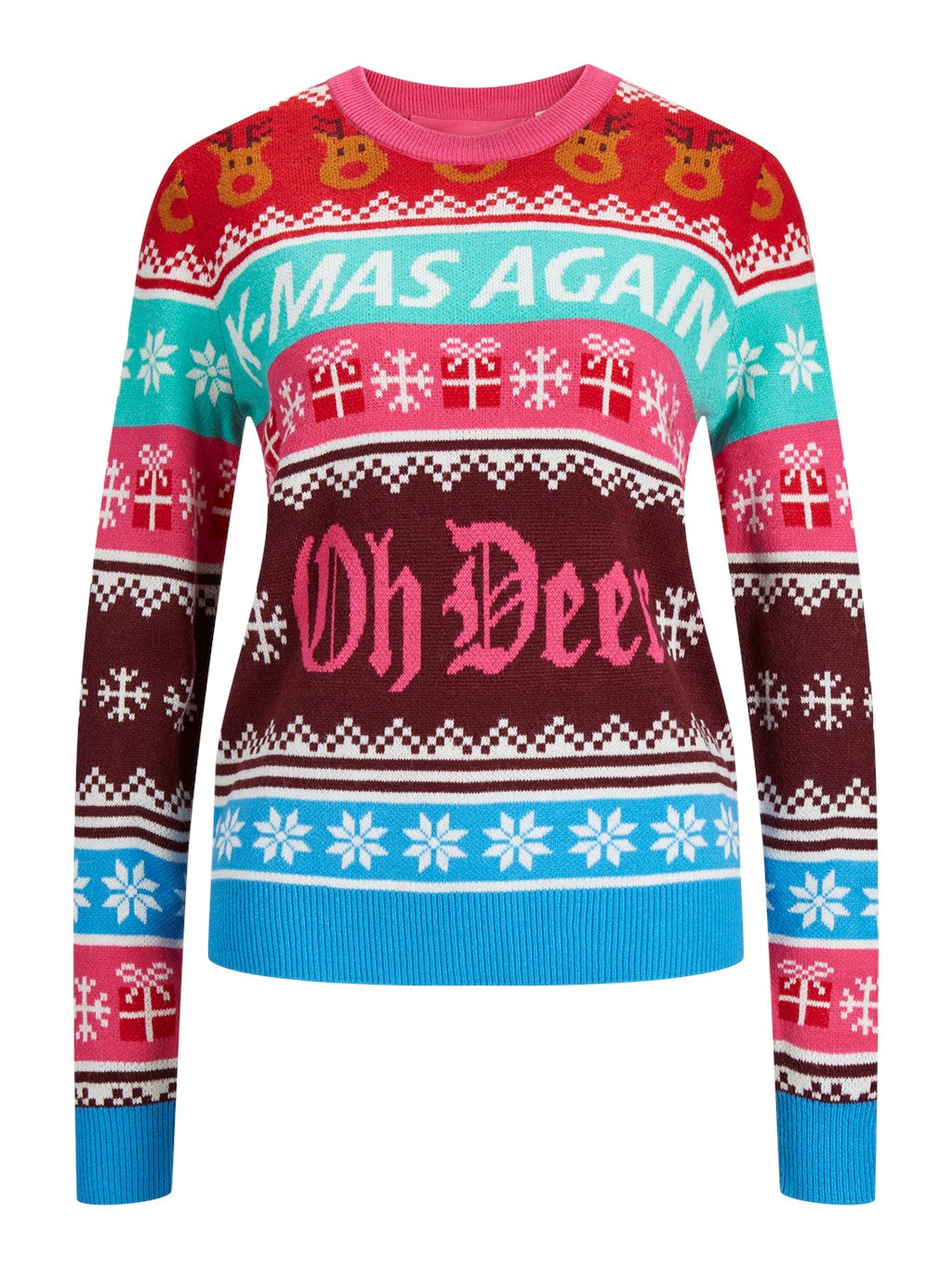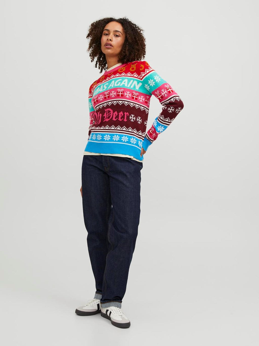 Örgü Noel kazağıyla tatil ruhuna girin. İnanılmaz derecede rahattır ve tasarımı oldukça şenlikli görünmesini sağlar; Jakar, işlemeli...