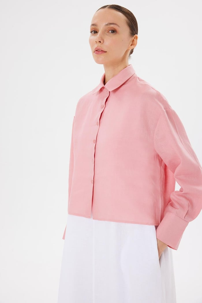 Kadın Keten Kısa Gömlek Terzi Dükkani