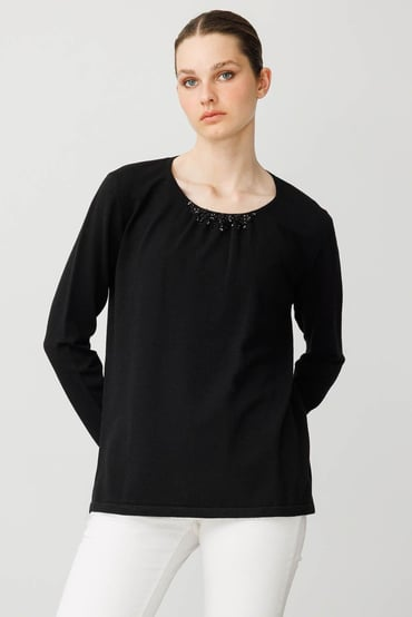 Kadın Sıfır Yaka Dantel Çiçek İşlemeli Ligralı Bluz Desen