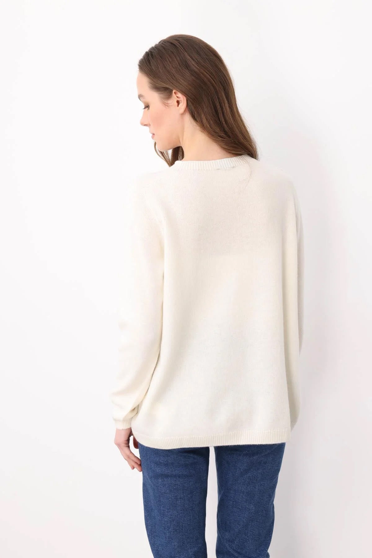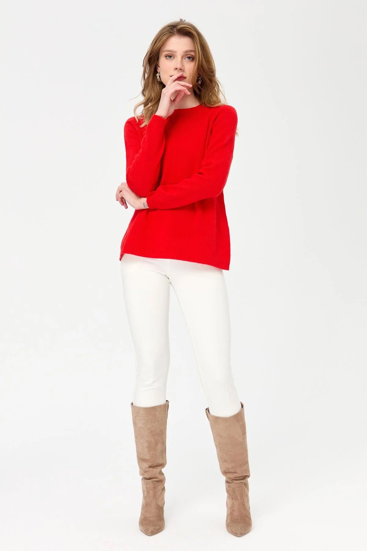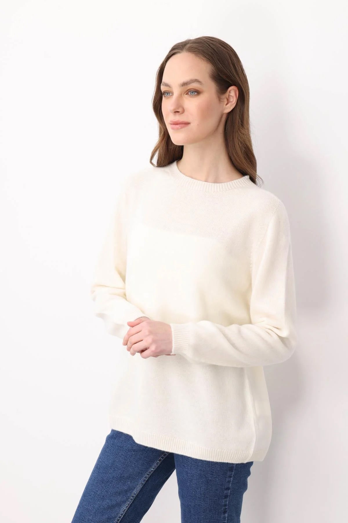 Kadın Sıfır Yaka Klasik Yün Kazak Desen