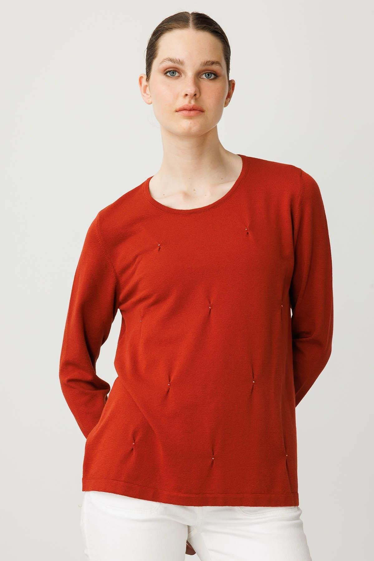 Kadın Sıfır Yaka Önü Pileli Boncuklu Ligralı Bluz Desen
