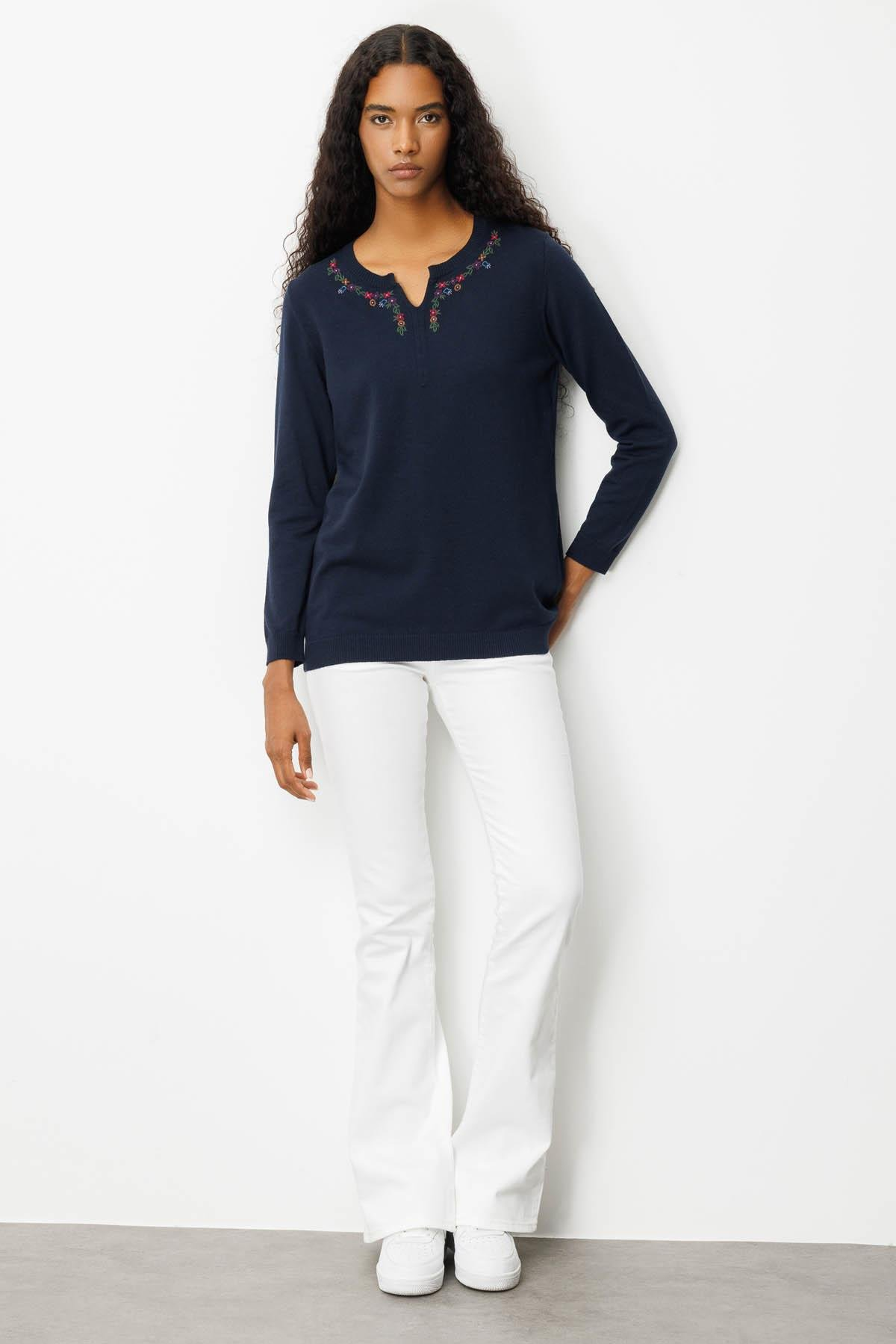 Kadın Sıfır Yaka Yakası Çiçek Nakış İşlemeli Bluz Desen